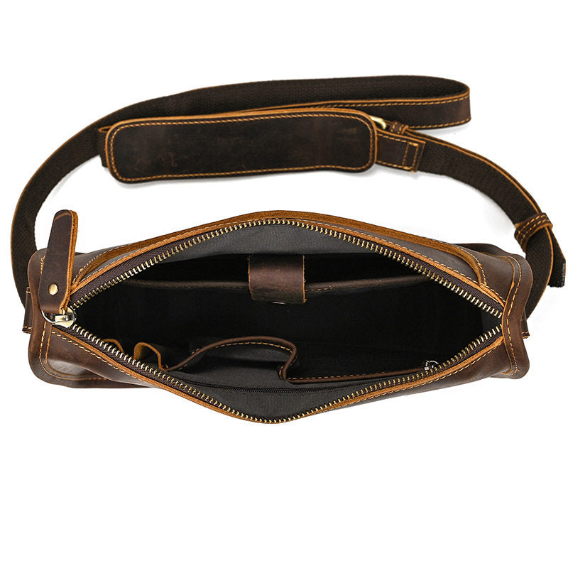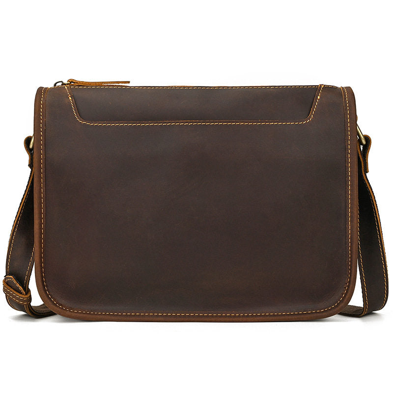 Built with a focus on purposeful organization, this Vintage Leather Messenger Bag includes a spacious front slot, a secure main zippered compartment, and a thoughtfully arranged interior with dedicated slots for your phone, cigarette case, tablet, pens, and an additional zippered pocket for valuables. Whether you’re commuting to the office, heading out for a weekend trip, or navigating the city, this bag keeps your essentials neatly organized, protected, and within easy reach. The adjustable shoulder strap ensures a comfortable, customized fit, making it the perfect hands-free companion for your on-the-go lifestyle.