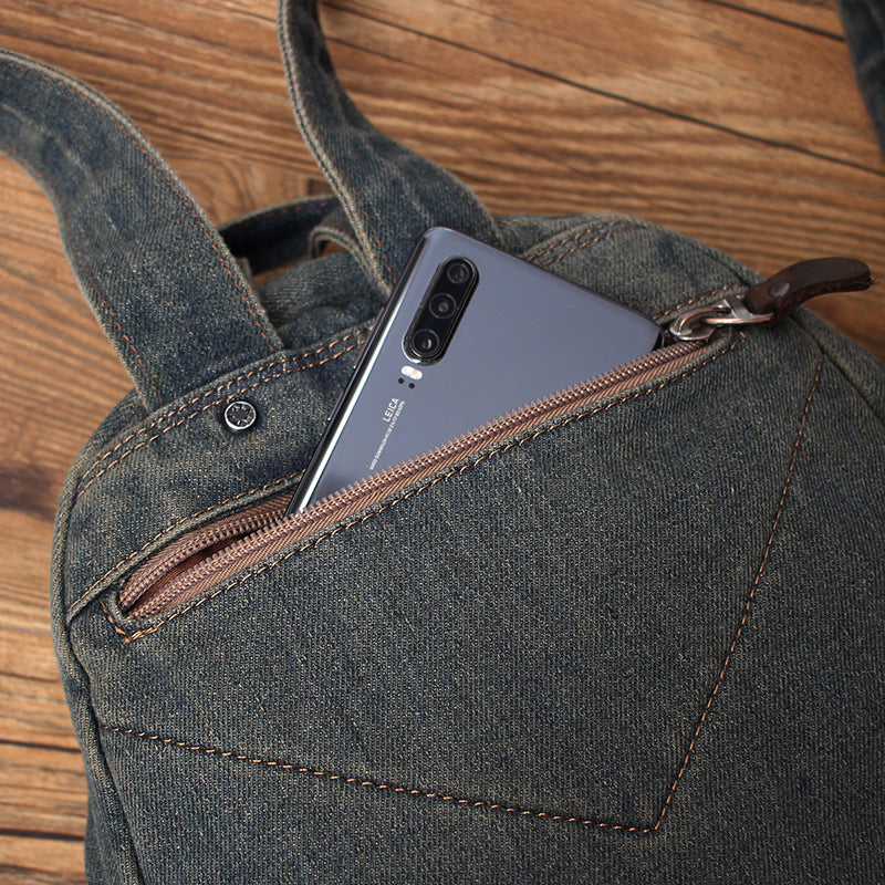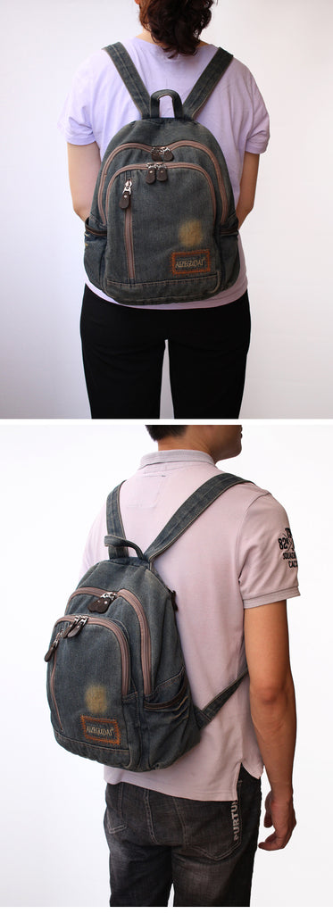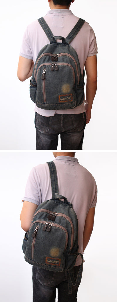 Style: Denim Blue Womens Backpack School Backpack Blue Denim Laptop Backpack For Men