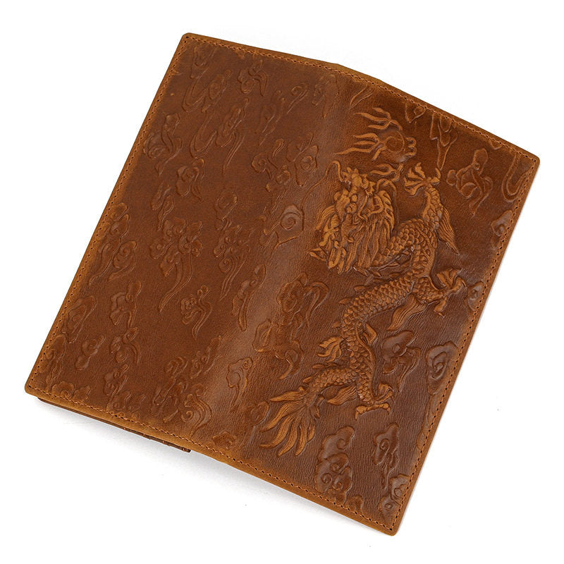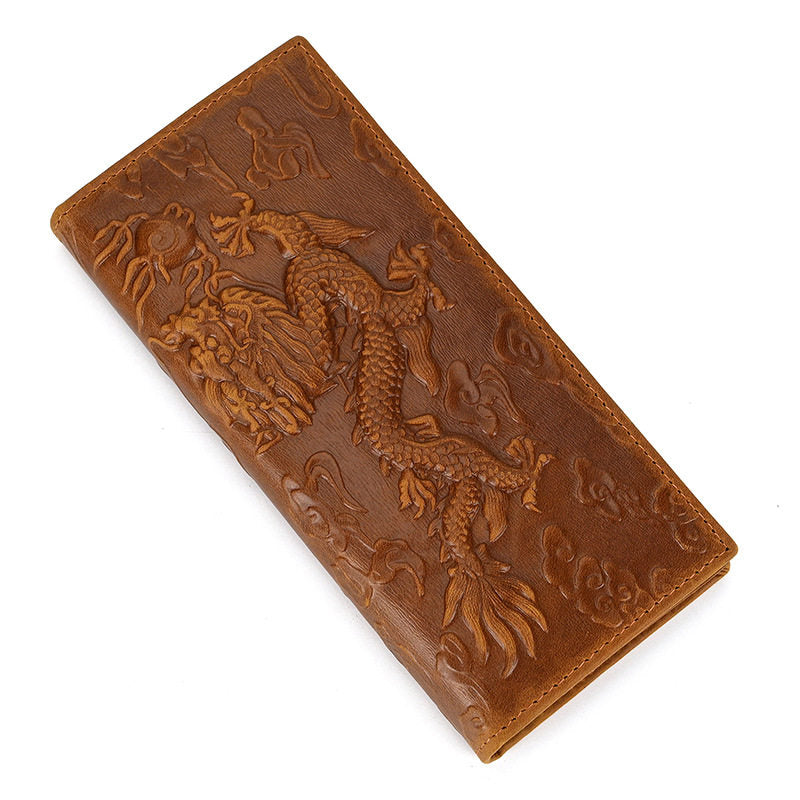 Chinese Dragon Wallet | Long Bifold Leather Wallet with Dragon & Cloud Embossing