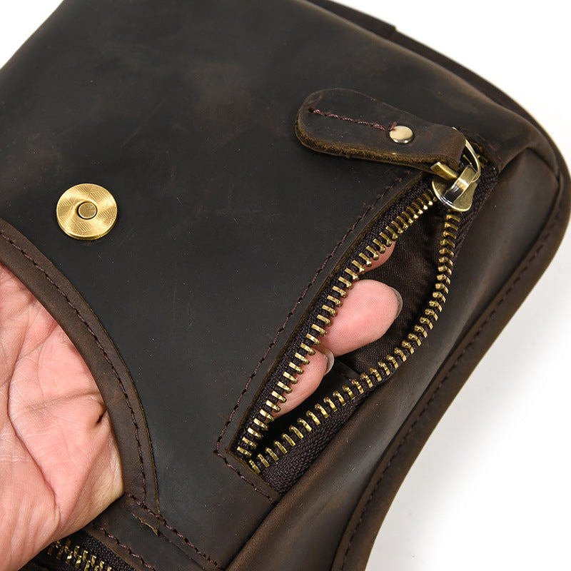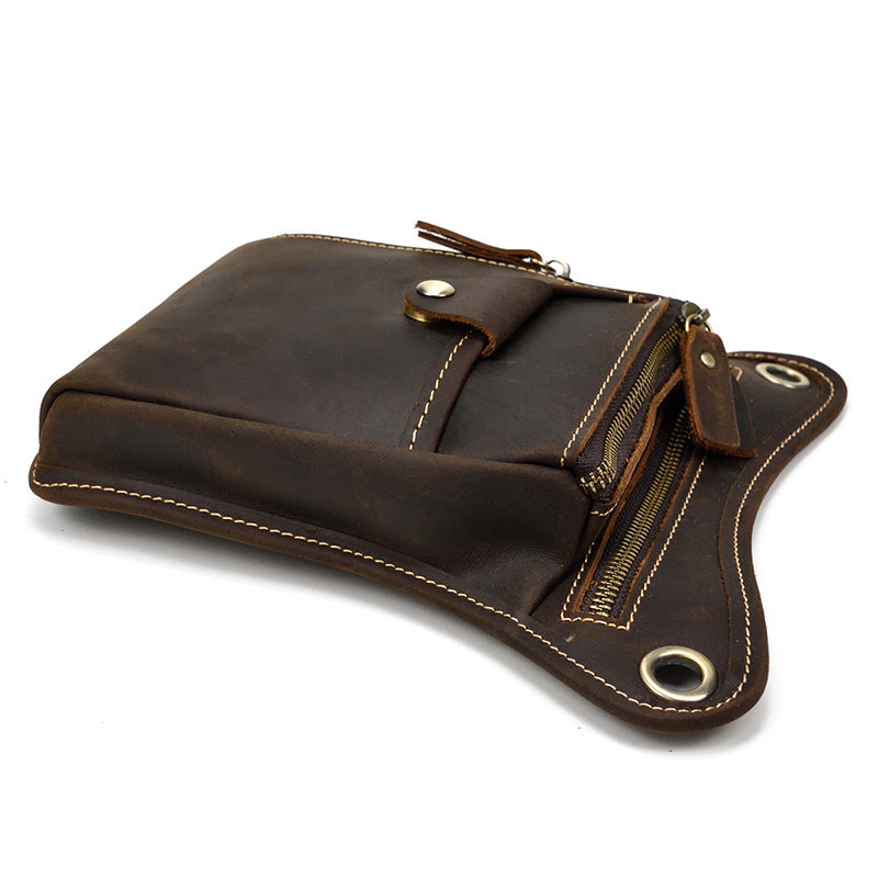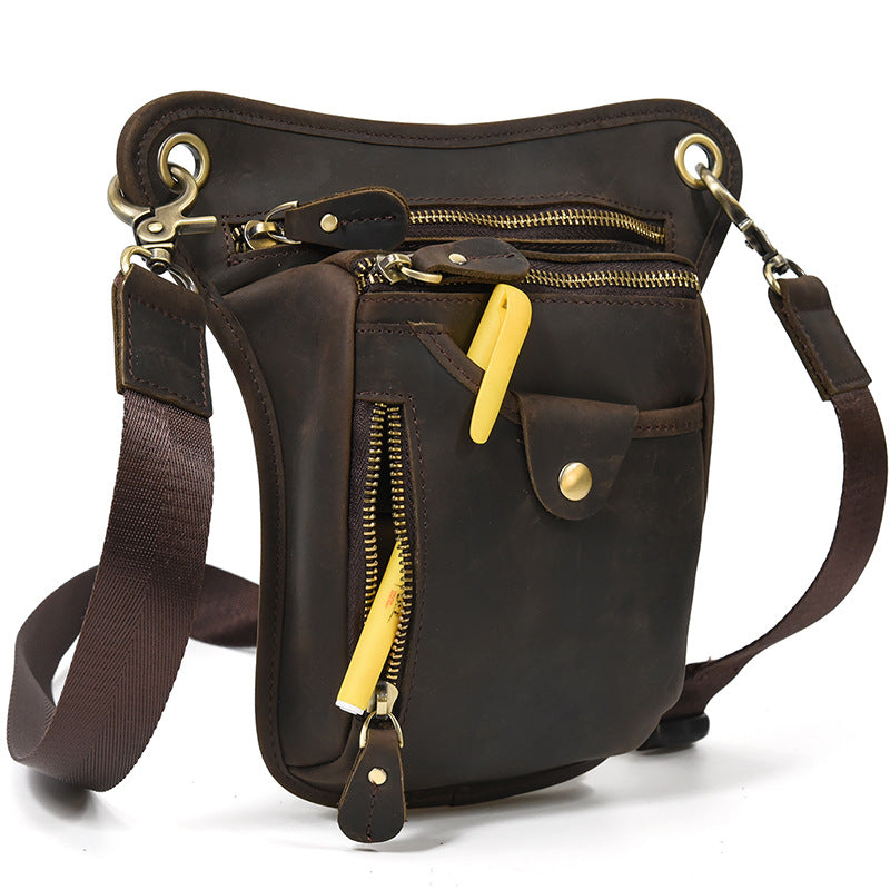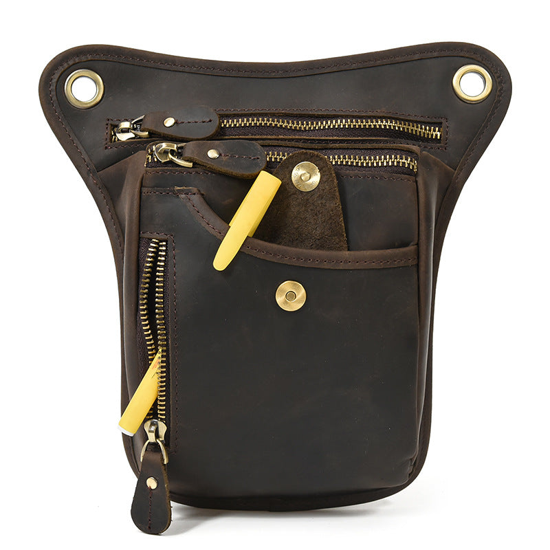 Design: Motorcycle Thigh Bag Brown Biker Leg Bag Leather Men's Belt Pouch Drop Leg Bags