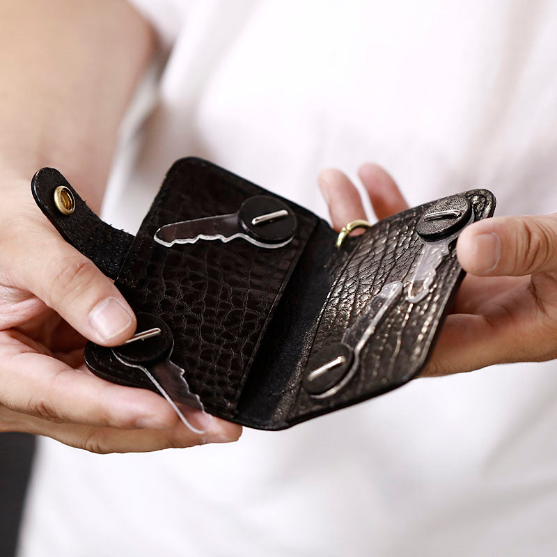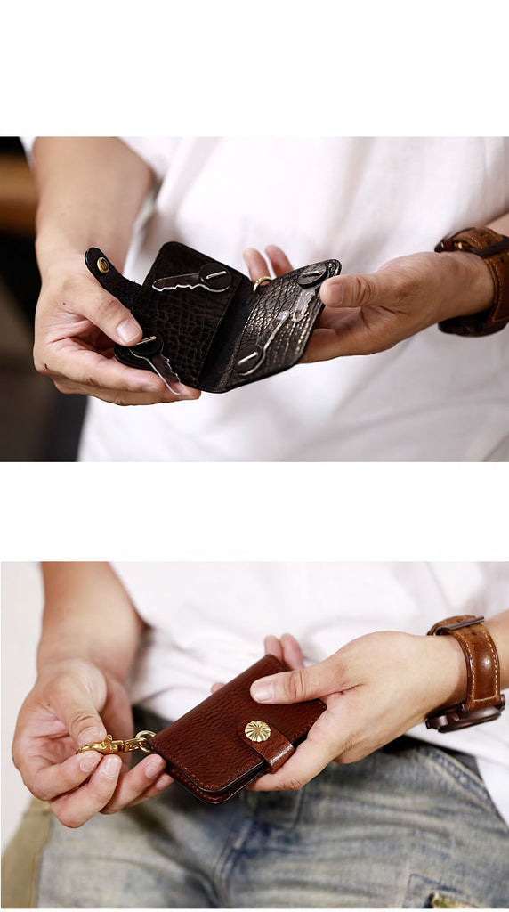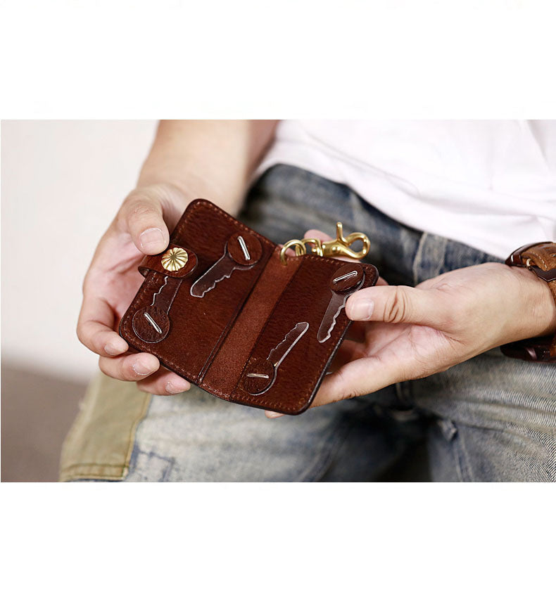 Design: Embossed Handmade Leather Mens Cool Key Wallet Car Key Card Holder Car Key Case for Men