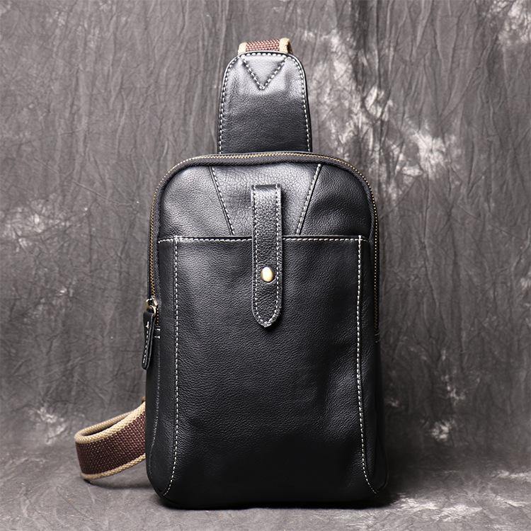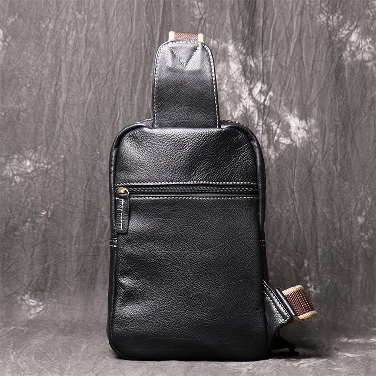 Style: Fashion Black Leather Backpack Men's 8-inch Sling Bag Chest Bag One shoulder Backpack Sports Bag For Men