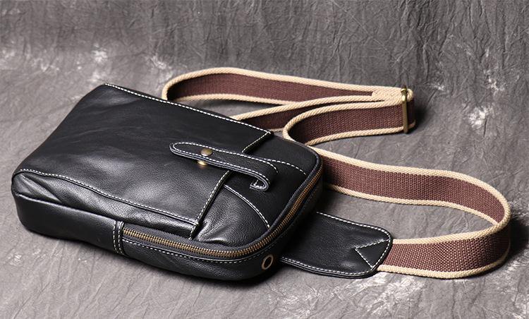 Design: Fashion Black Leather Backpack Men's 8-inch Sling Bag Chest Bag One shoulder Backpack Sports Bag For Men