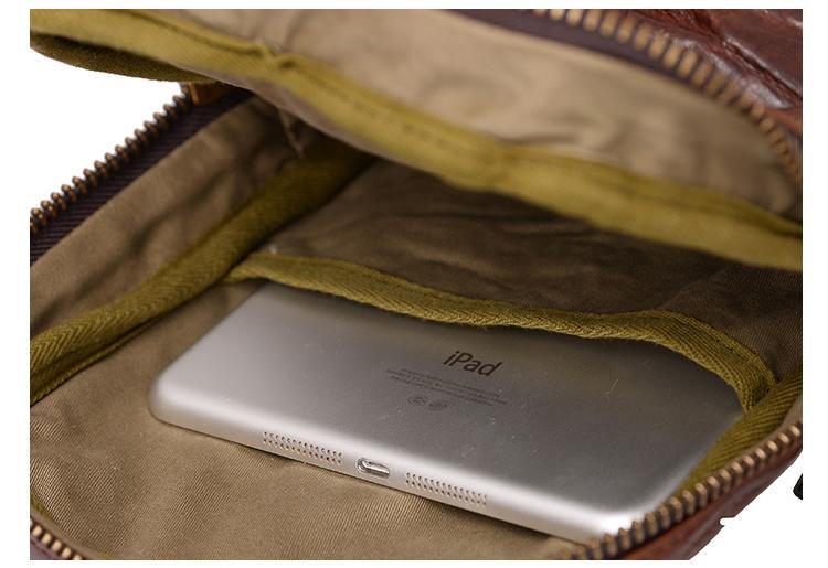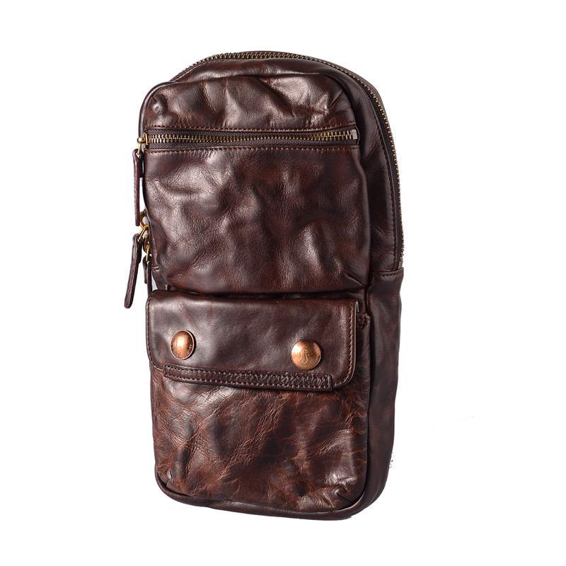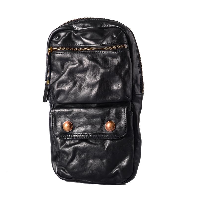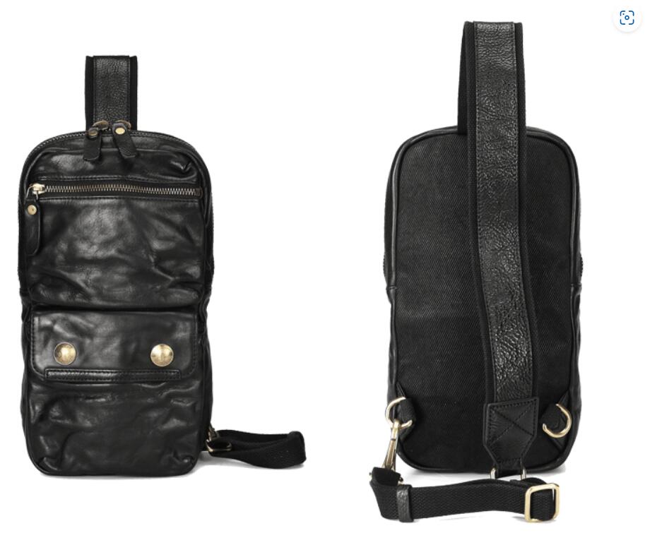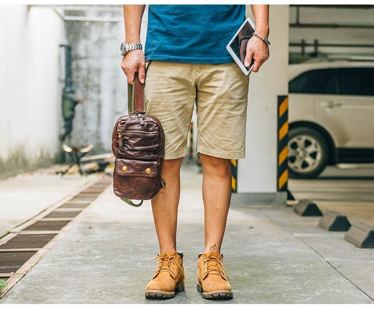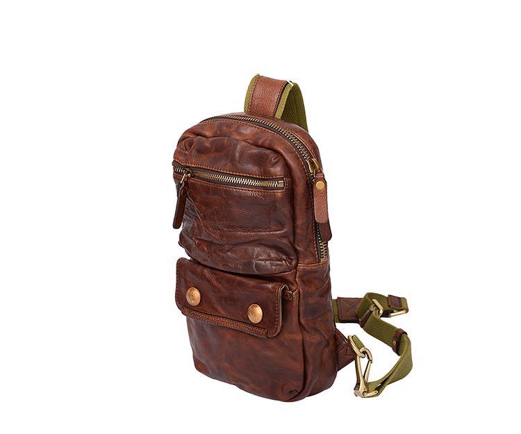 Design: Fashion Black Leather Men Army Green Chest Bag Messenger Bag One Shoulder Backpack For Men