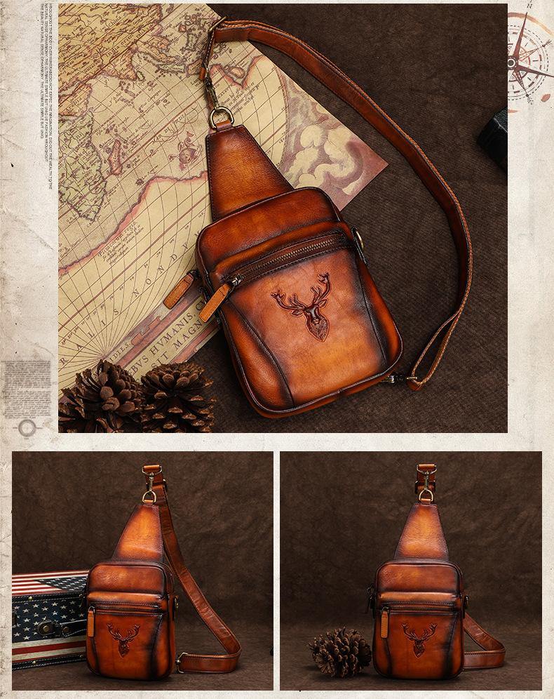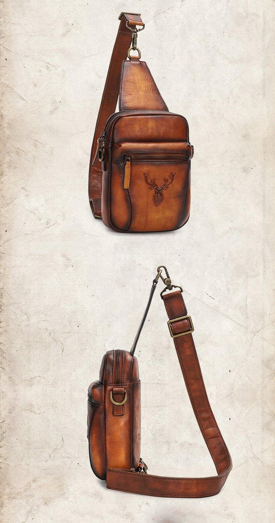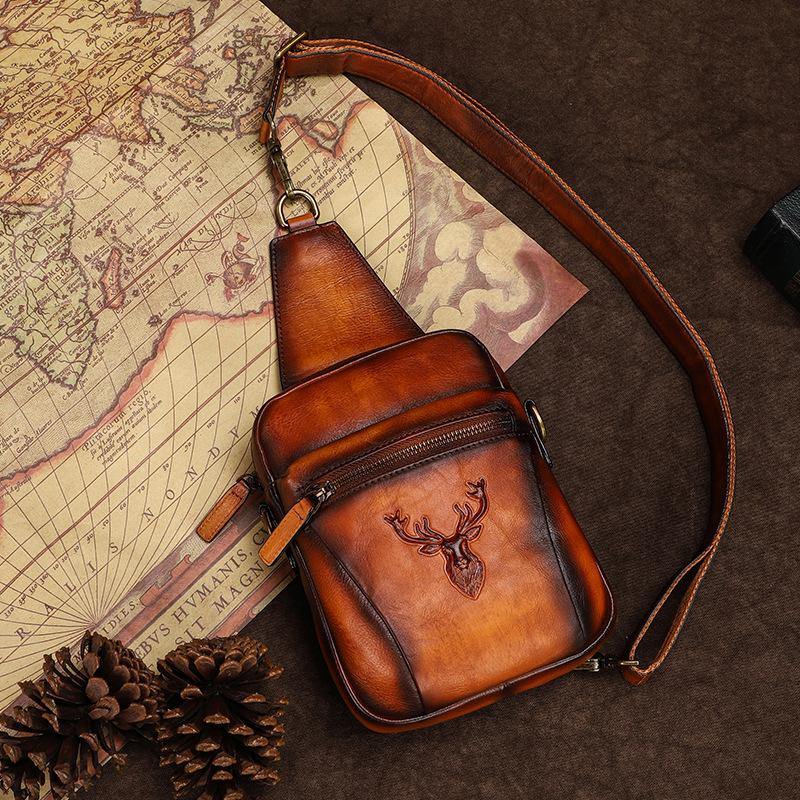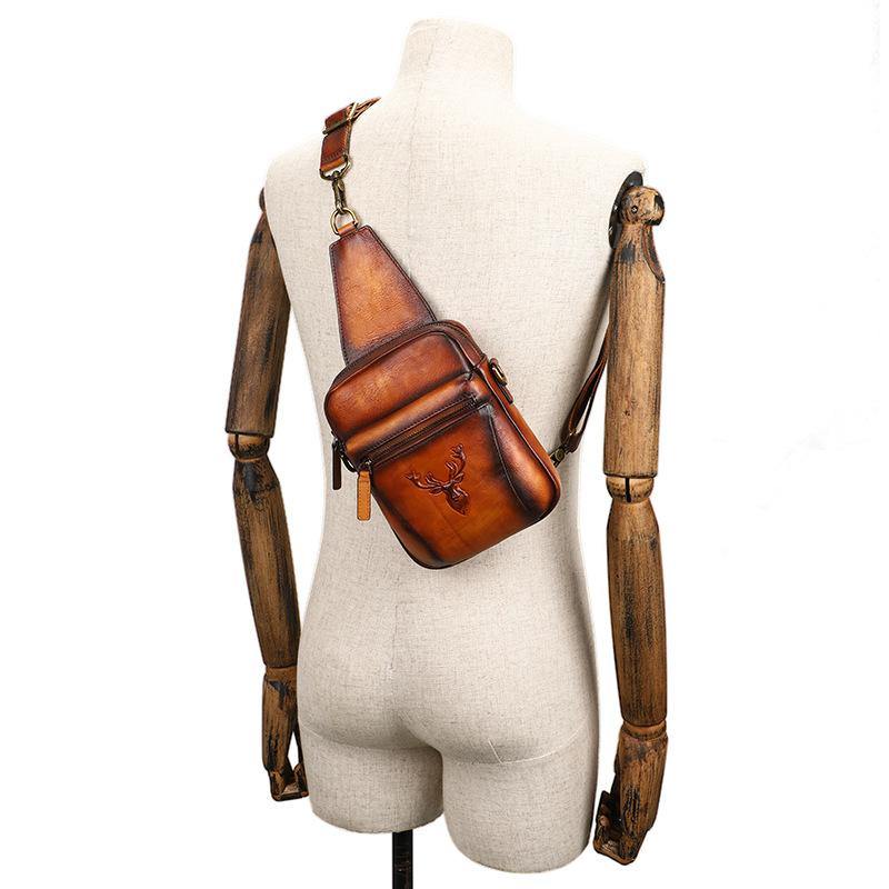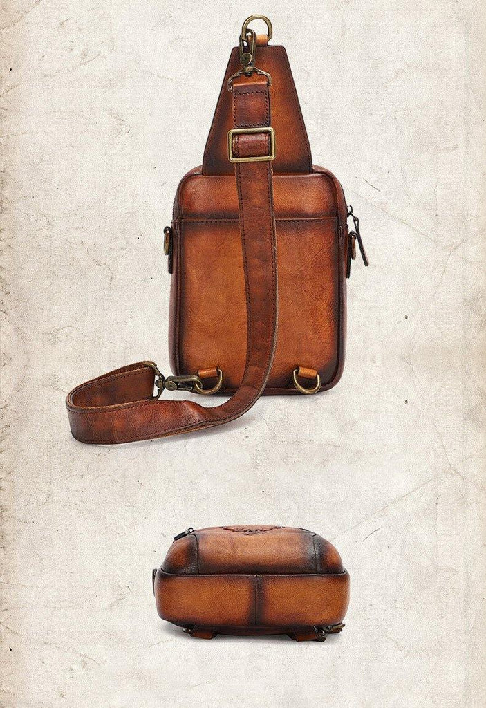 Design: Fashion Brown Leather Men's 8-inches Sling Bag Chest Bag One shoulder Backpack Sling Bag For Men