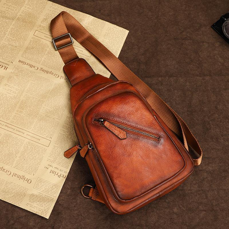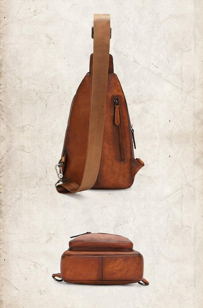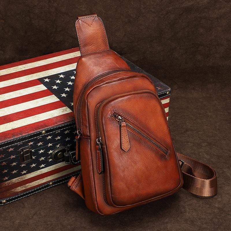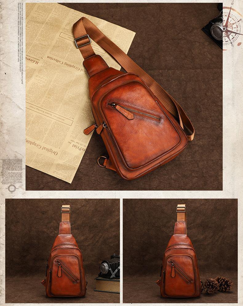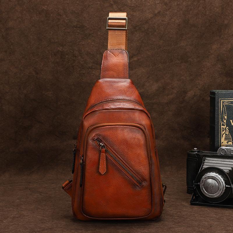 Design: Vintage Brown Leather Men's Sling Bags Chest Bag Brown Sling Pack Sling Backpack For Men