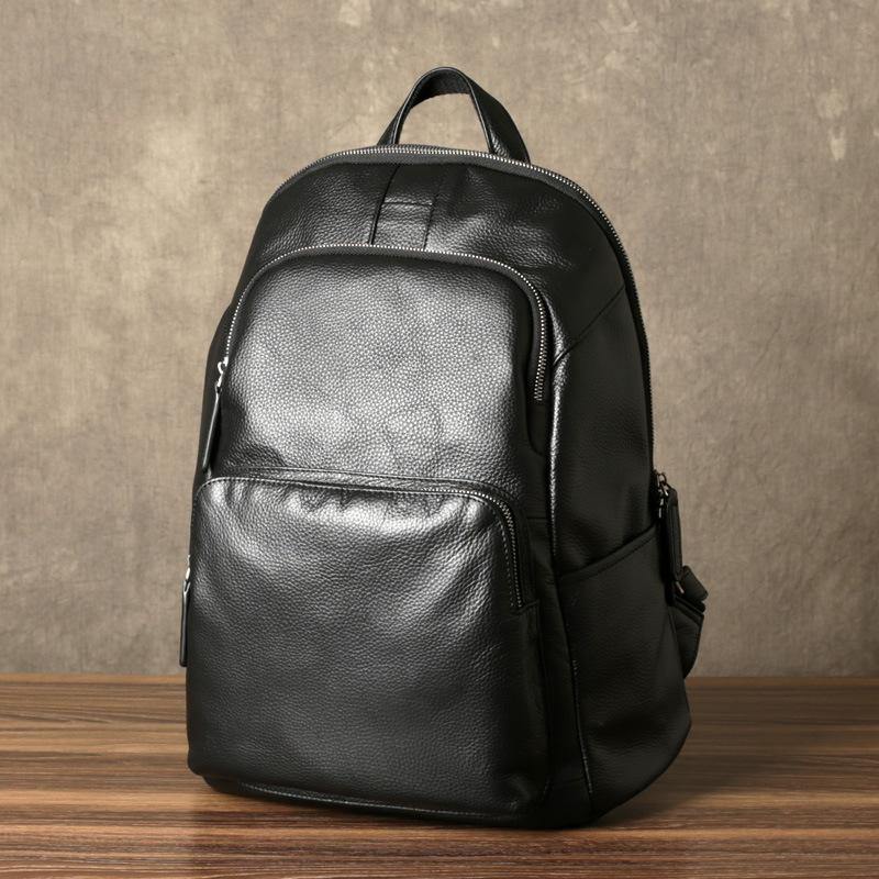 Design: Fashion Leather Men's 15 inches Computer Backpack Black Large Travel Backpack Black Large College Backpack For Men