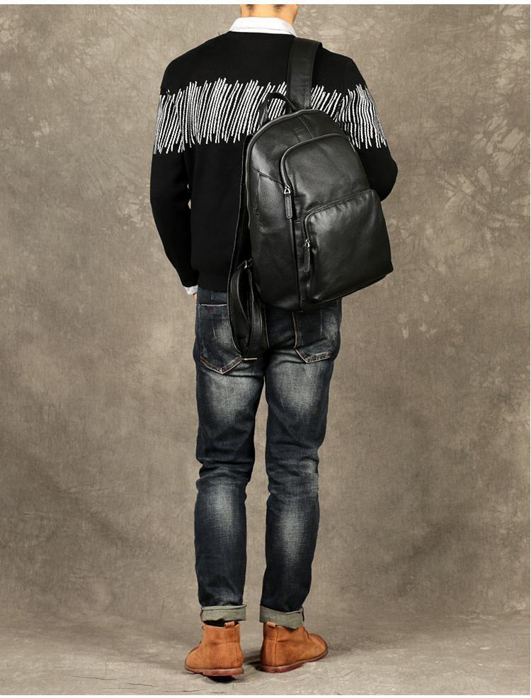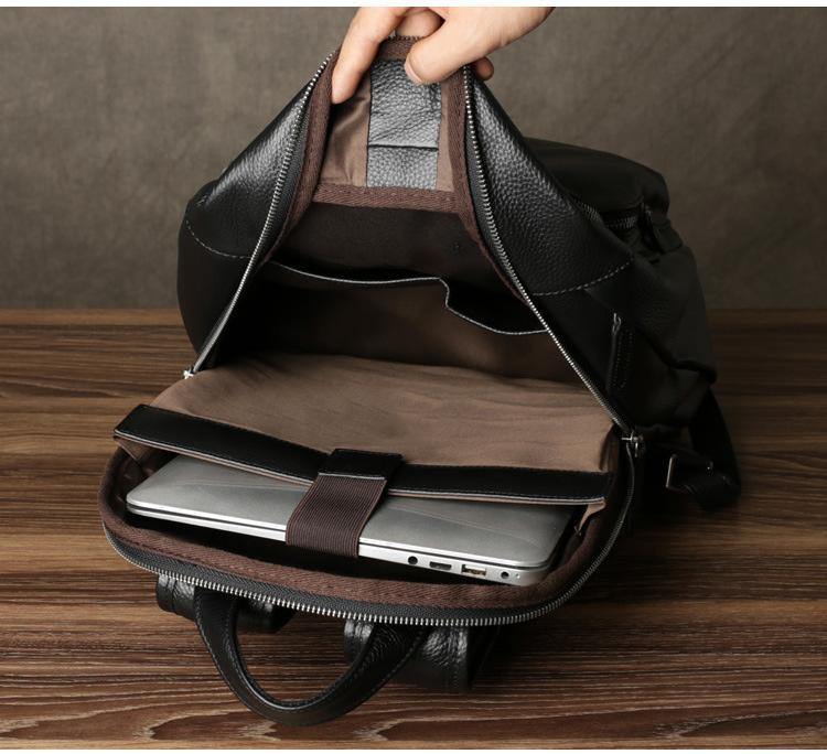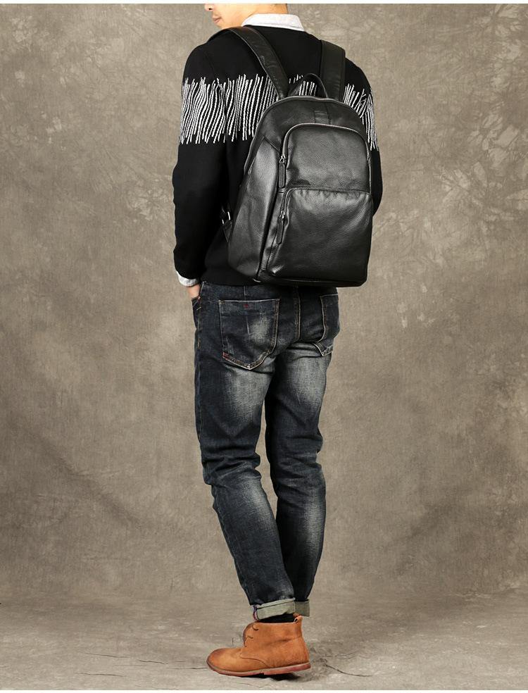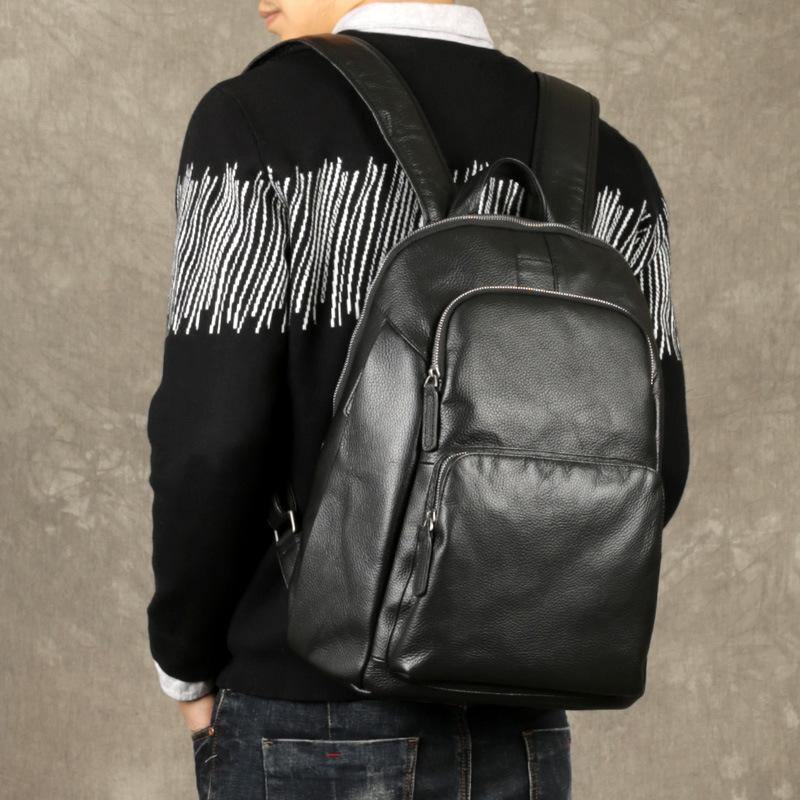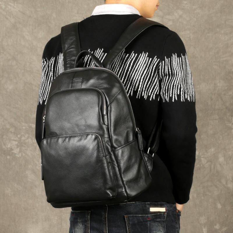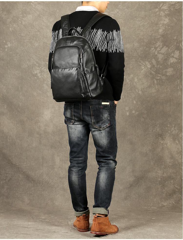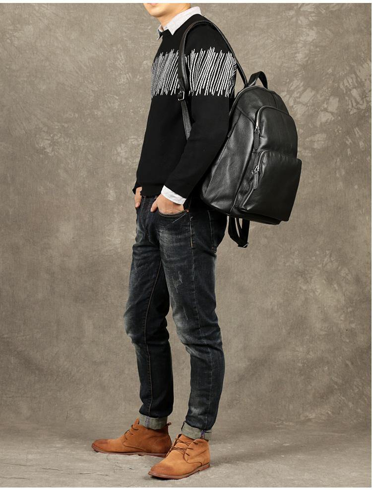 Design: Fashion Leather Men's 15 inches Computer Backpack Black Large Travel Backpack Black Large College Backpack For MenOverview: