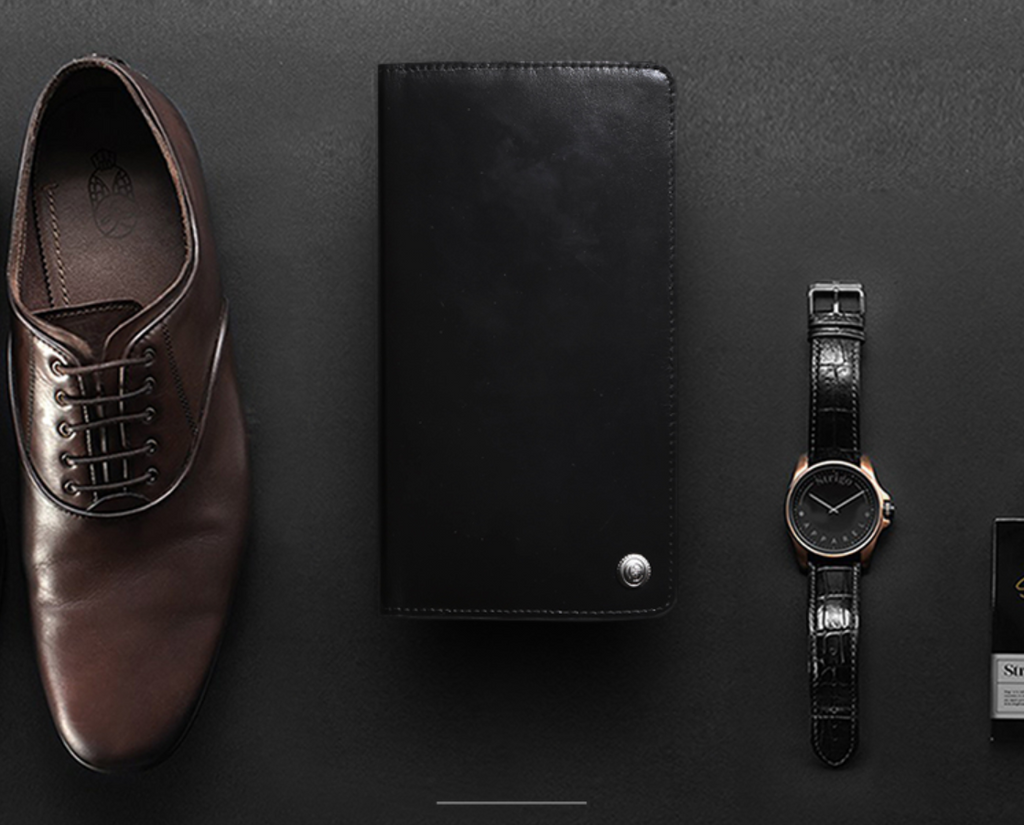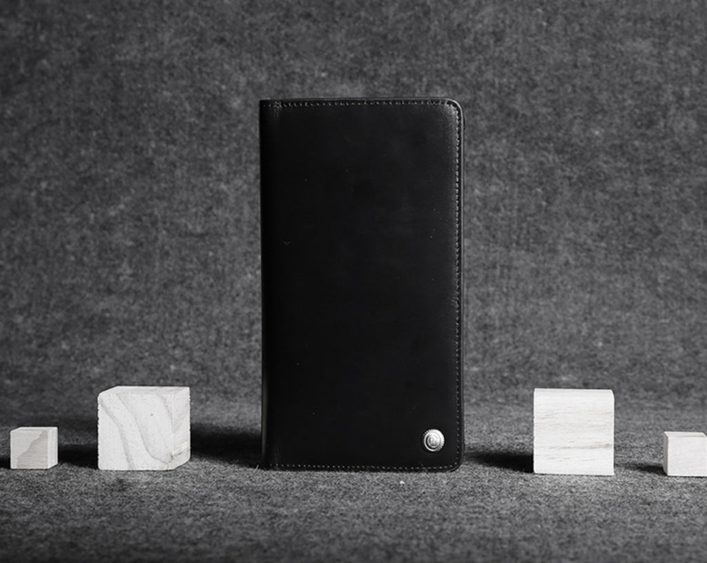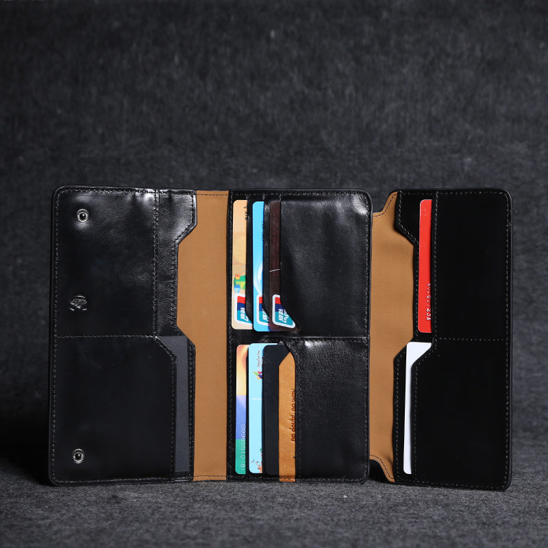 Design: Fashion Leather Men's Trifold Long Wallet Black Gray Long Wallet For Men