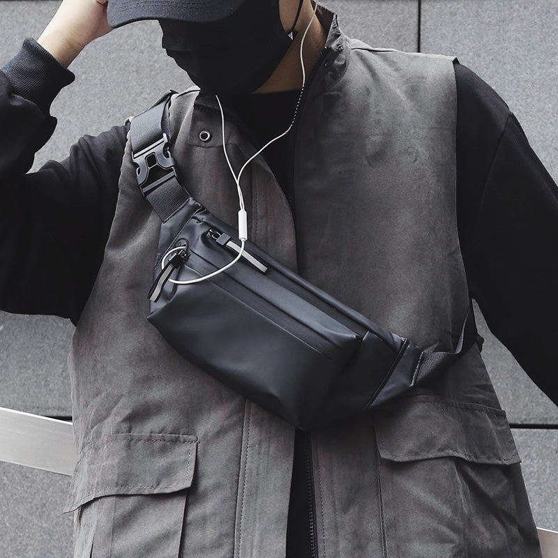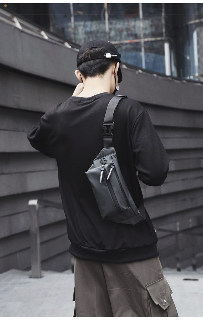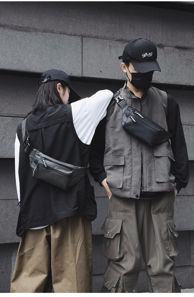 Style: Fashion PU Men's Fanny Pack Trendy Black Waterproof Chest Bag Sport Waist Bag For Men