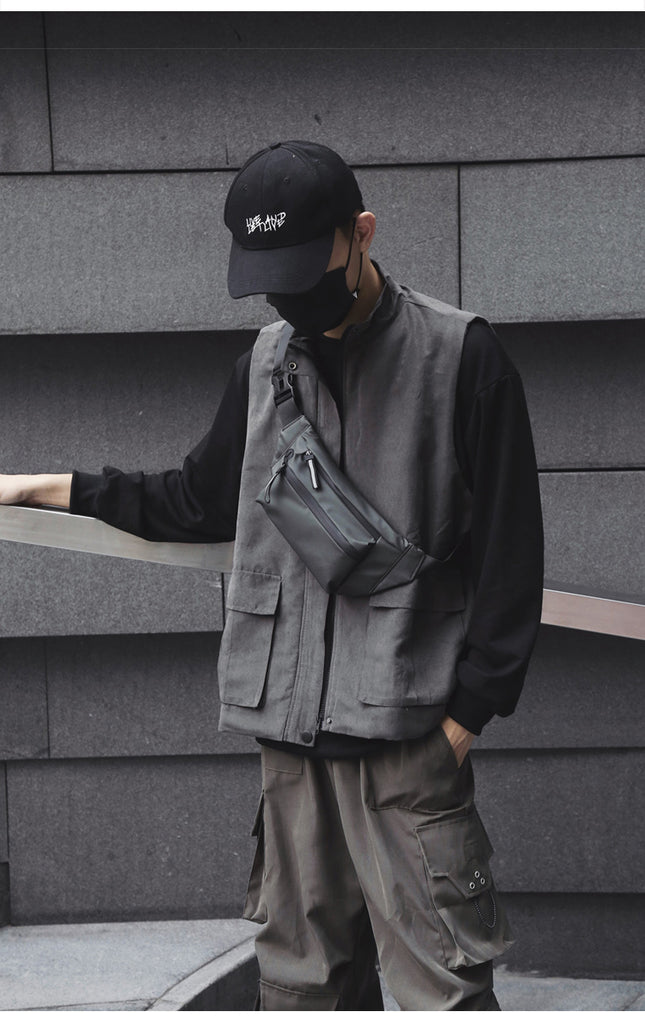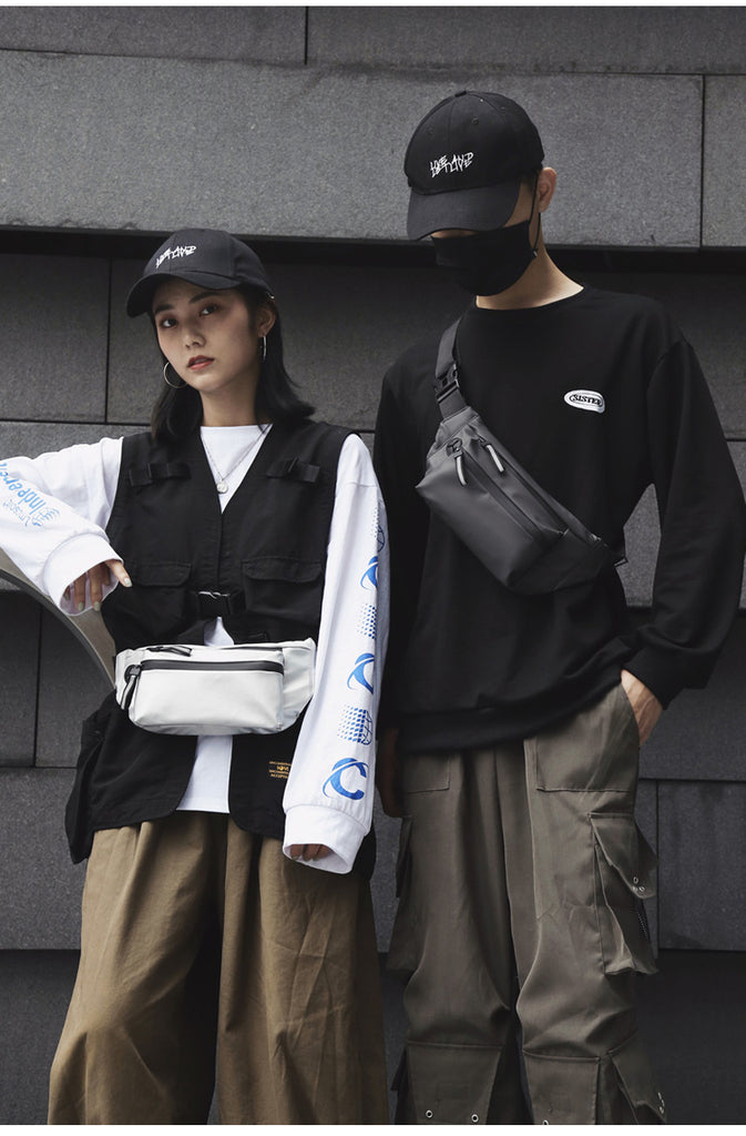 Design: Fashion PU Men's Fanny Pack Trendy Black Waterproof Chest Bag Sport Waist Bag For Men
