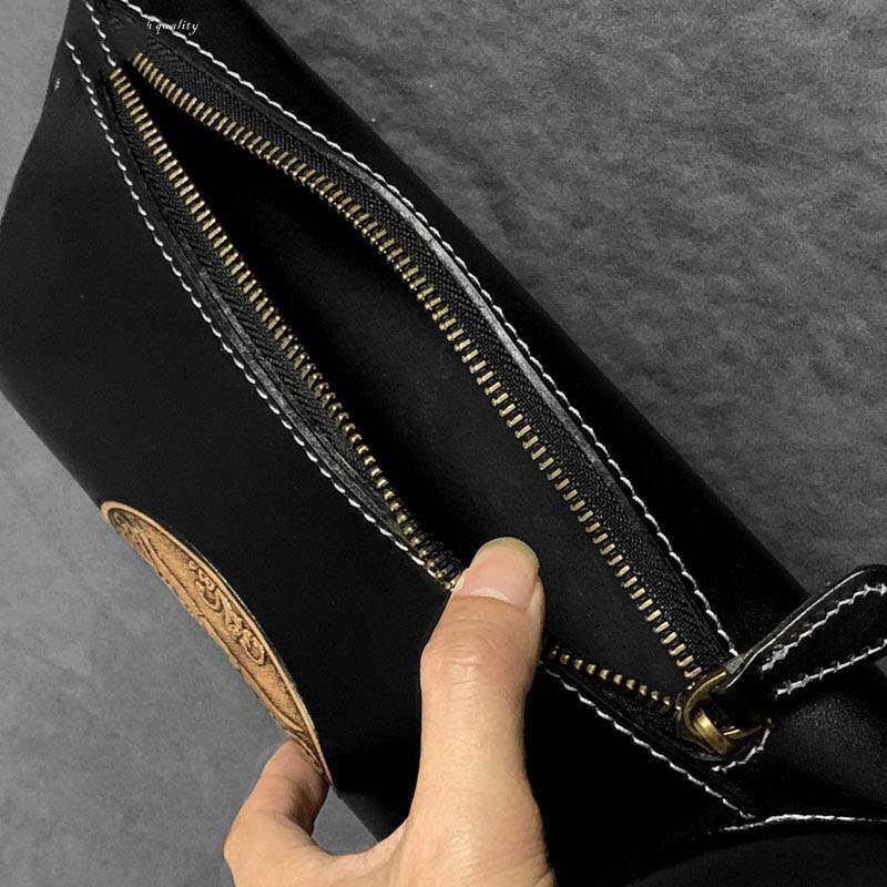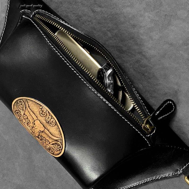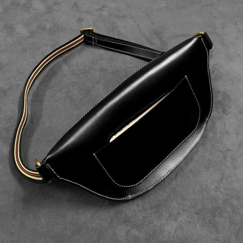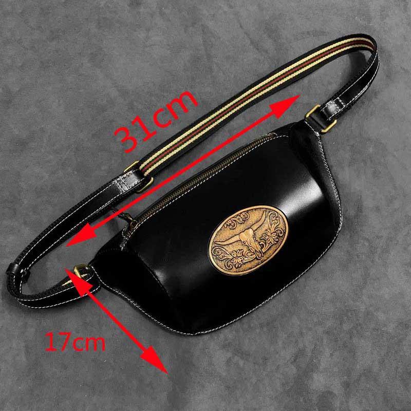 Design: Fashion Black Genuine Leather Biker Fanny Pack Biker Waist Bag Motorcycle Hip Bag For Men