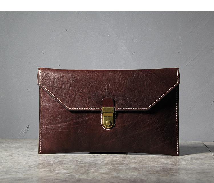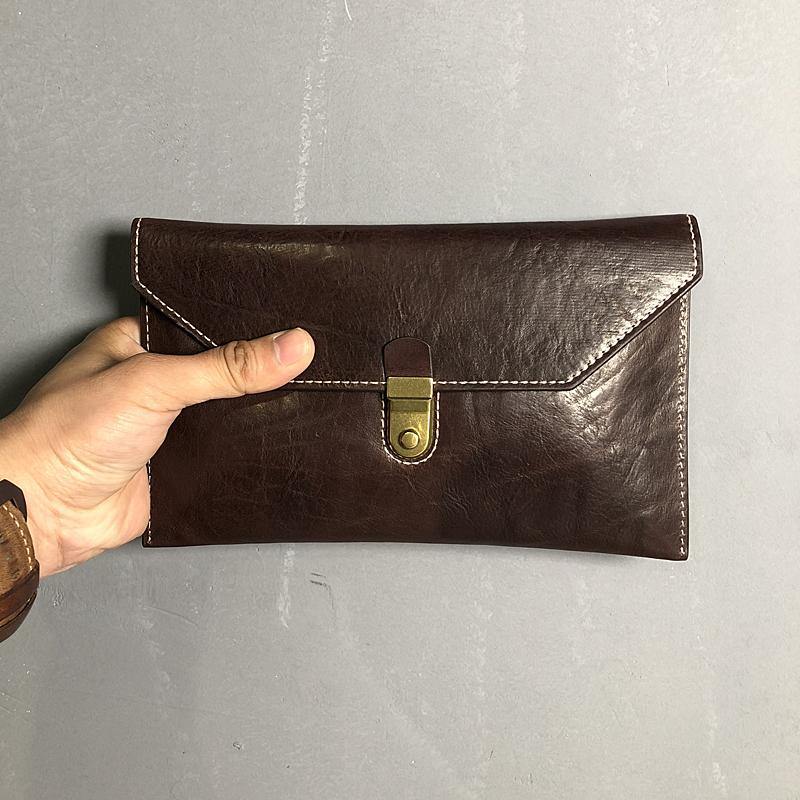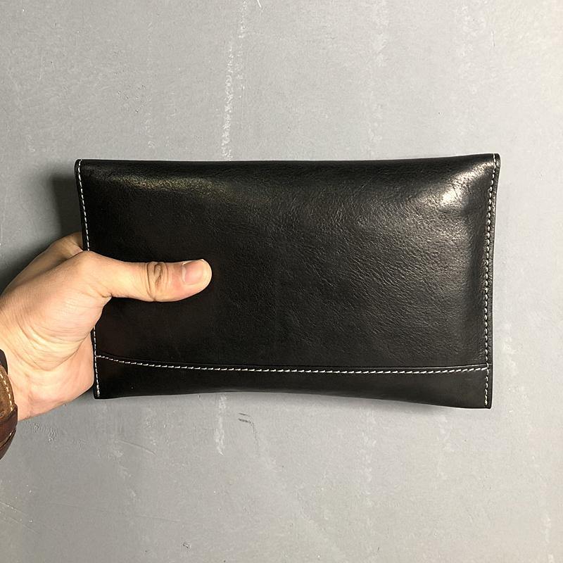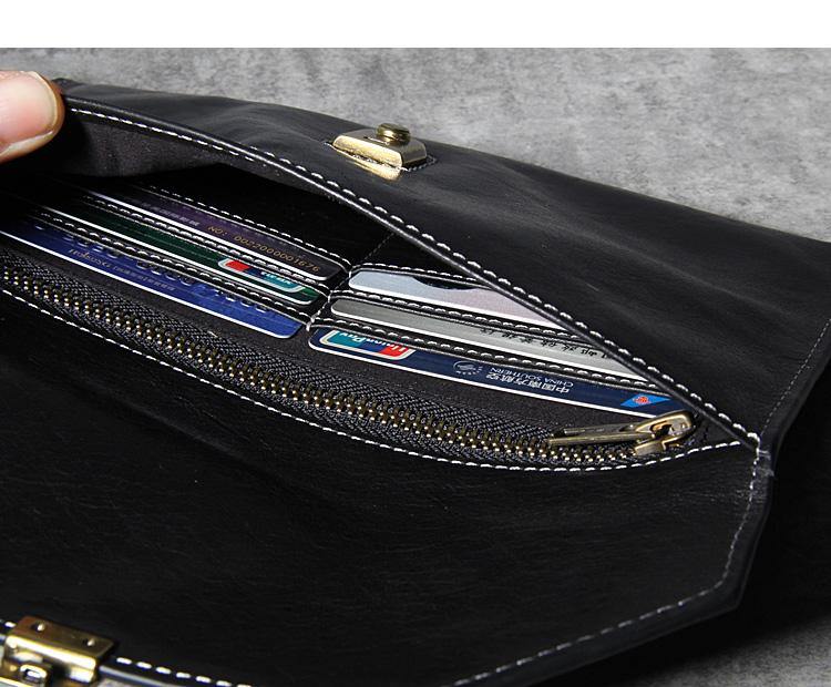 Design: Genuine Leather Black Mens 8 inches Clutch Bag Zipper Womens Brown Clutch Wallet Wristlet Wallet for Men