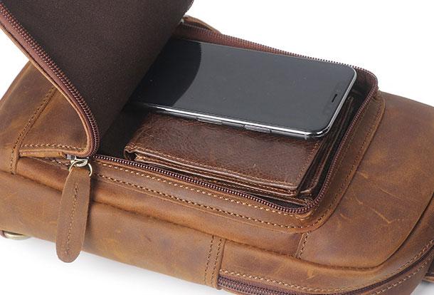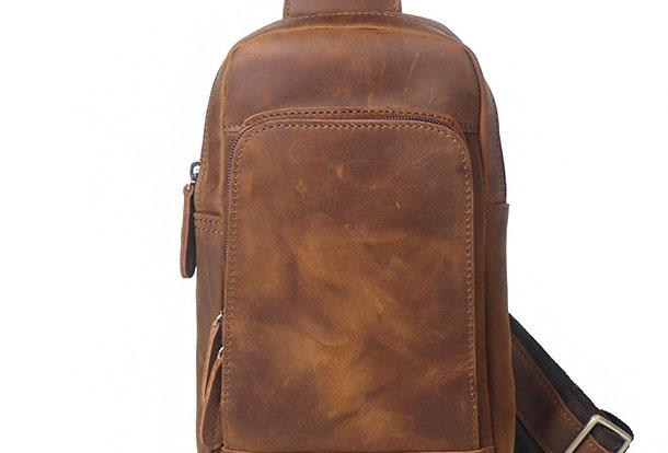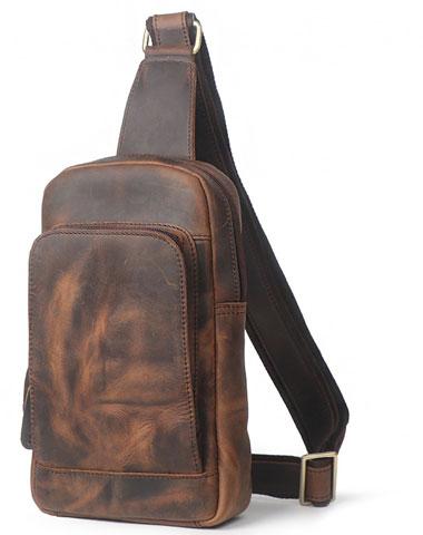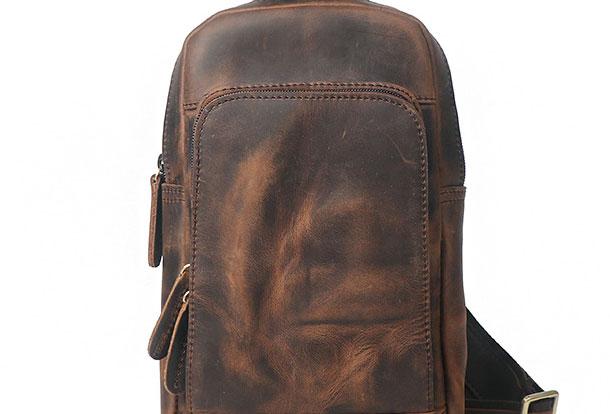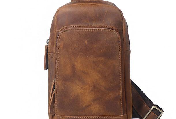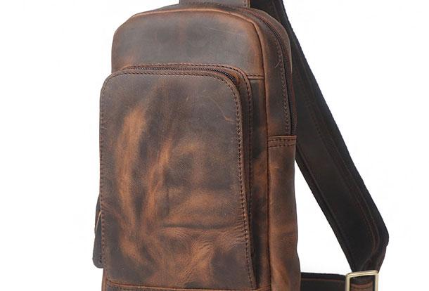 Style: Genuine Leather Cool Chest Bag Sling Bag Crossbody Bag Travel Bag Hiking Bag For Mens