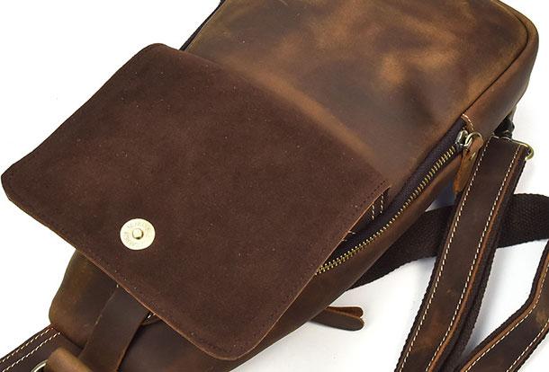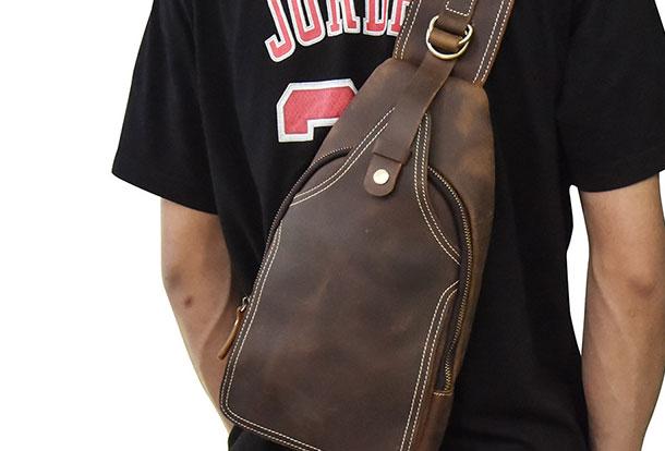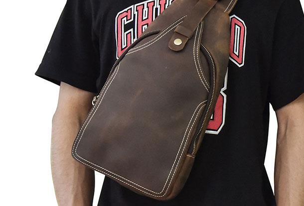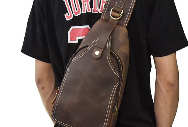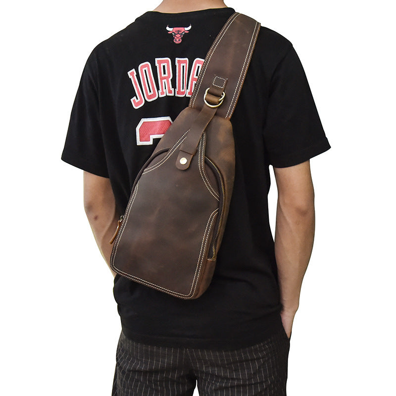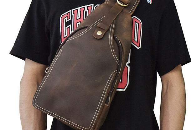 Style: Genuine Leather Cool Chest Bag Sling Bag Crossbody Bag Travel Bag Hiking Bag For Mens
