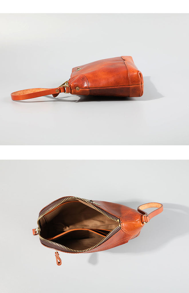 Style: Genuine Leather Hand-stitched Mens 8 inches Clutch Shoulder Bag Zipper Clutch Wristlet Wallet for Men