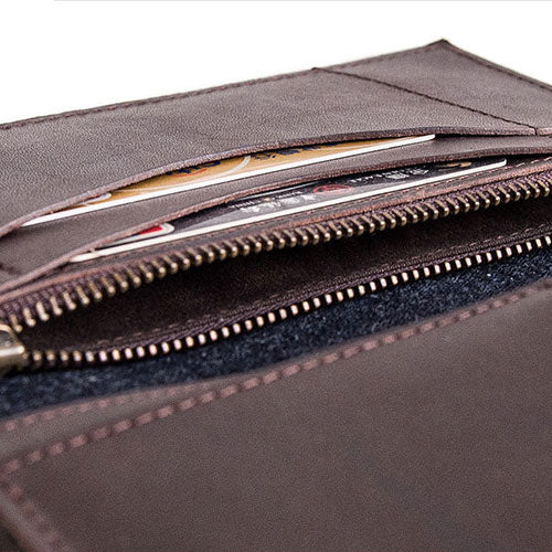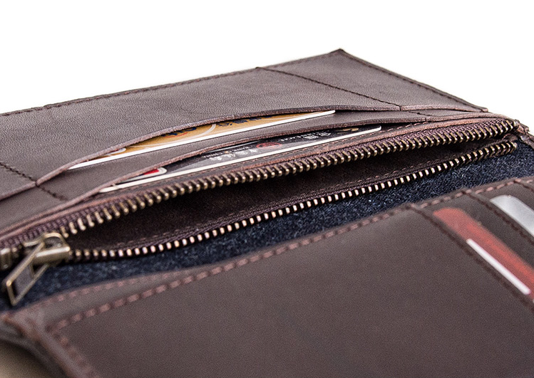 Slots: 1 full size bill slot, 7 card holders, 1 zipper slot,