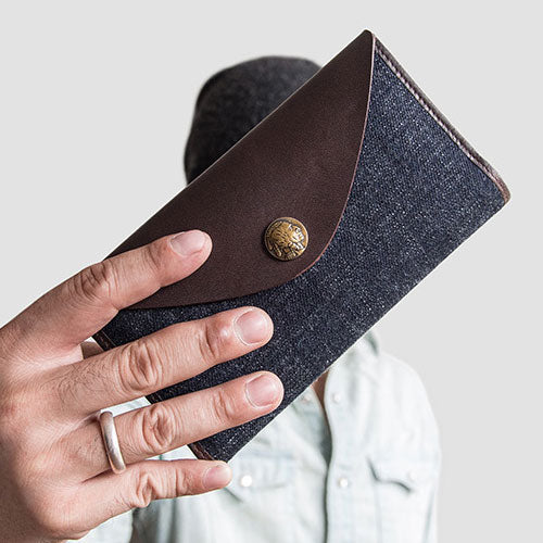Design: Genuine Leather Jean Mens Cool Long Leather Wallet Men Cards Wallets Bifold for Men