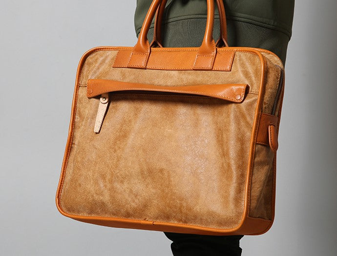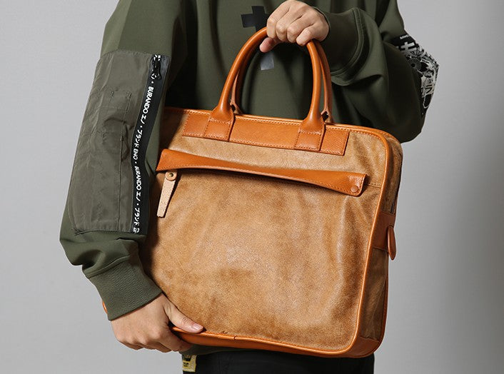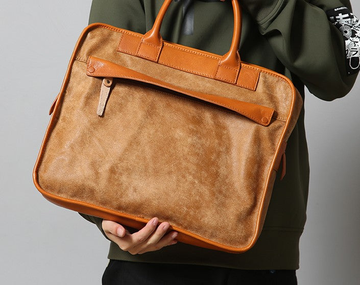 Design: Genuine Leather Mens Briefcase Work Bag Laptop Bag Business Bag for Men