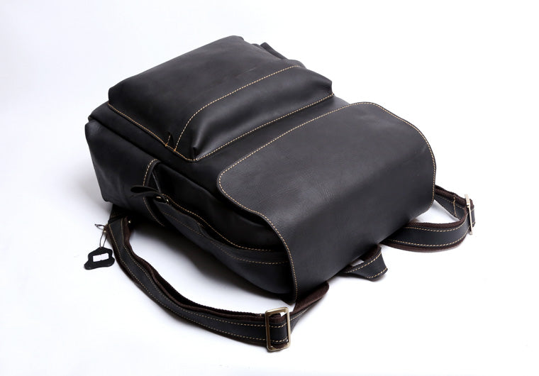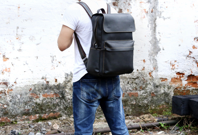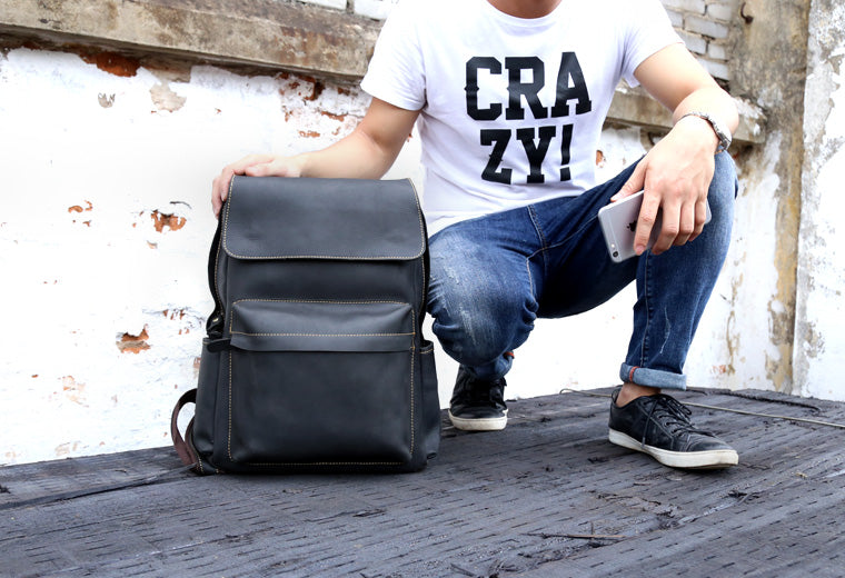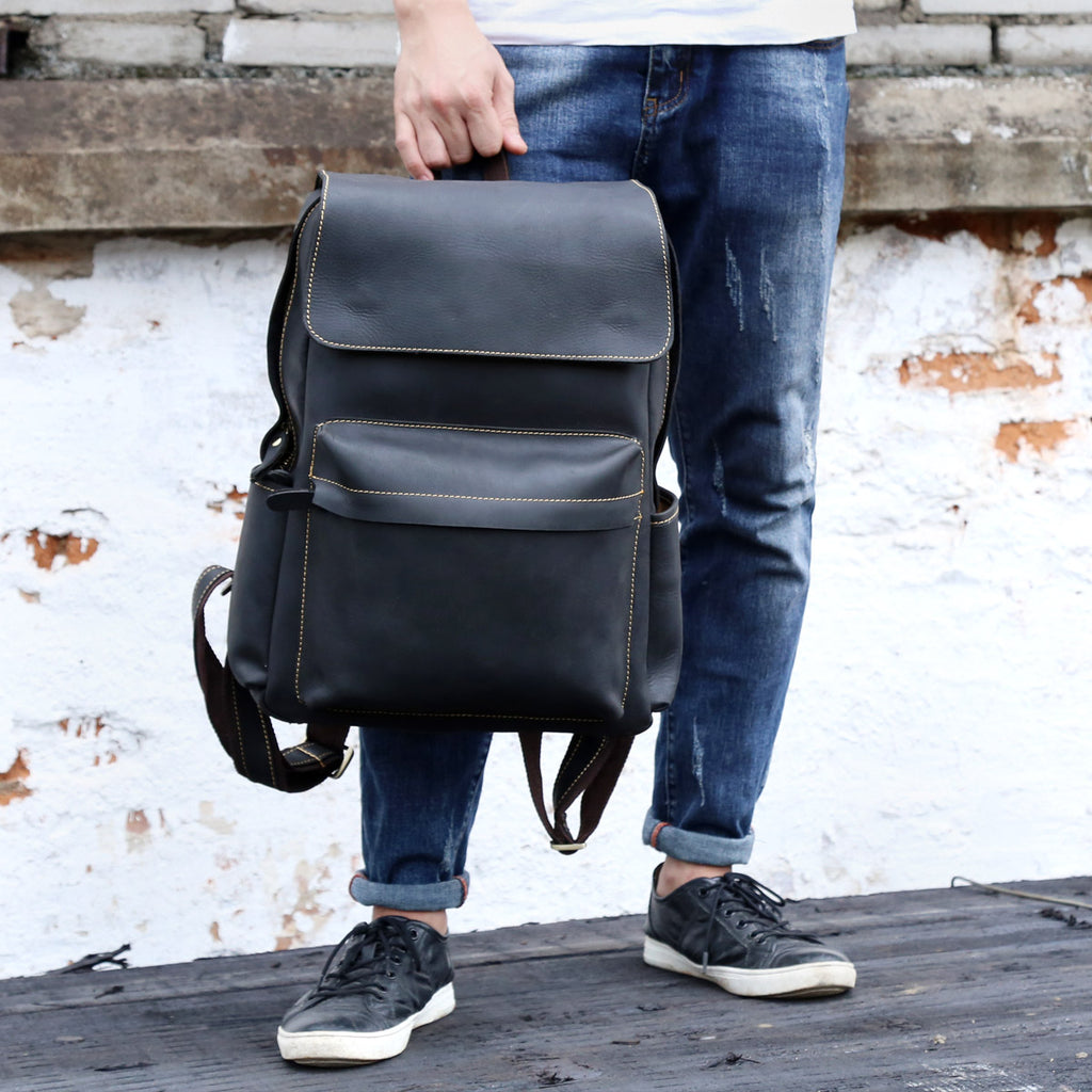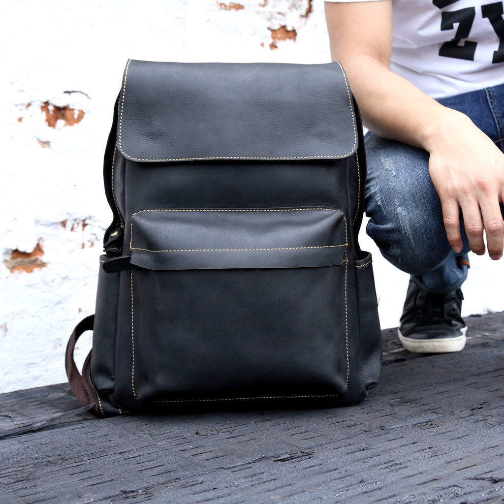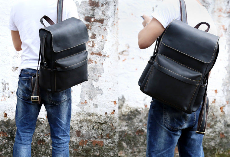 Design: Genuine Leather Mens Cool Backpack Sling Bag Large Black Travel Bag Hiking Bag for men
