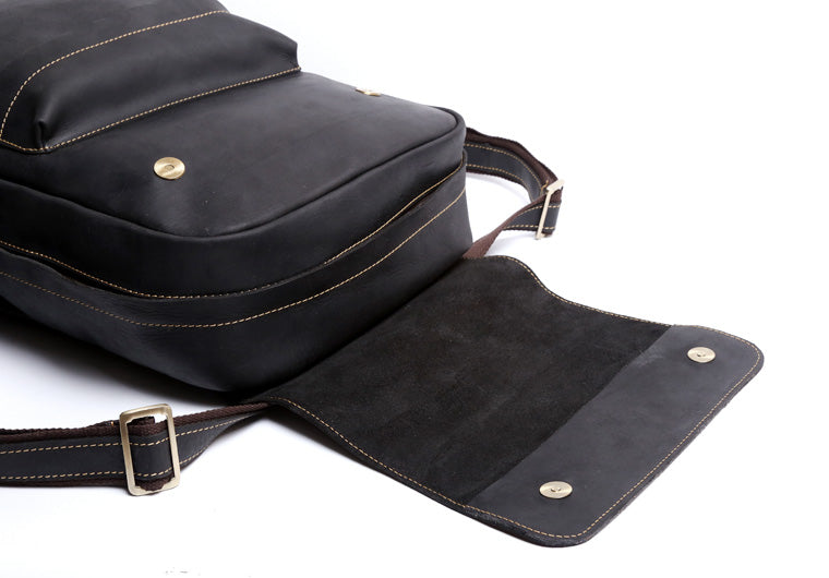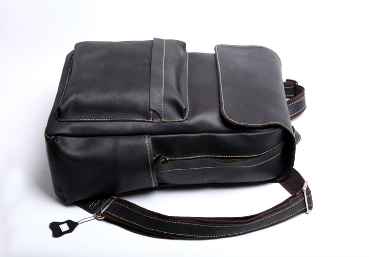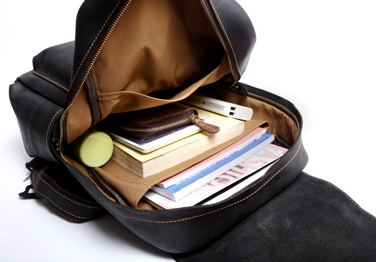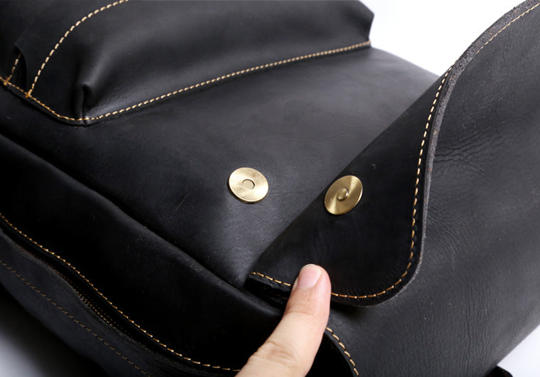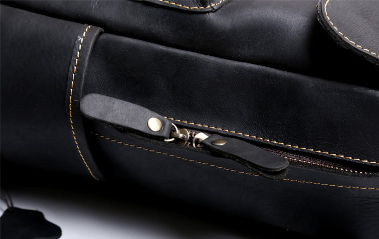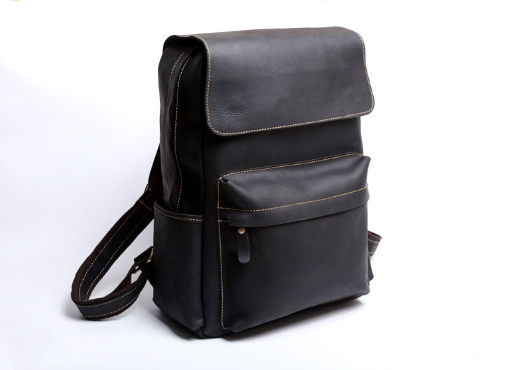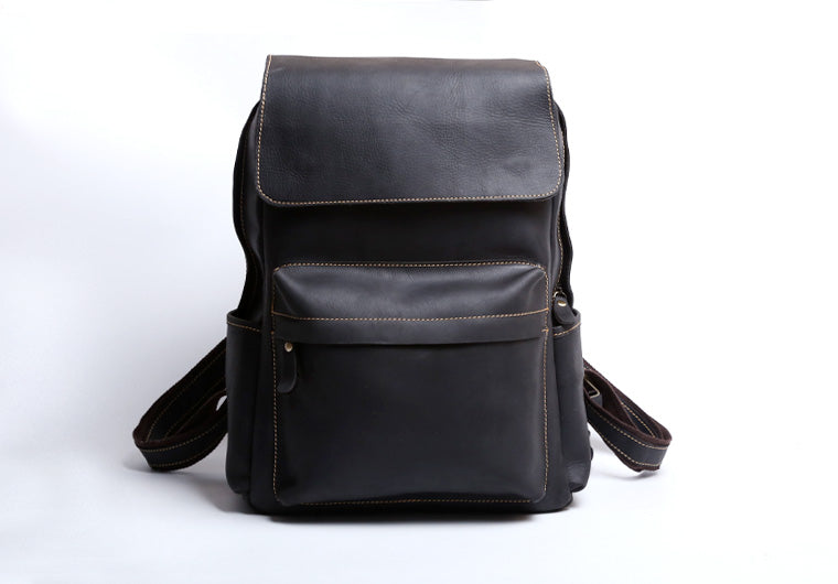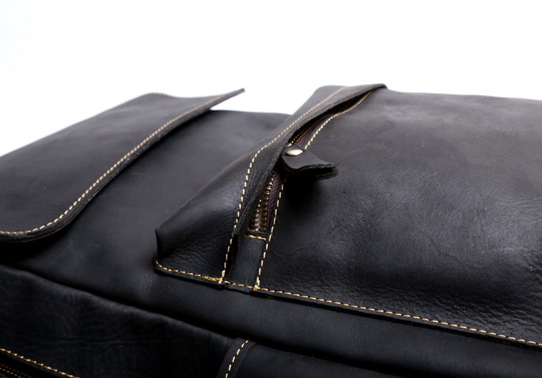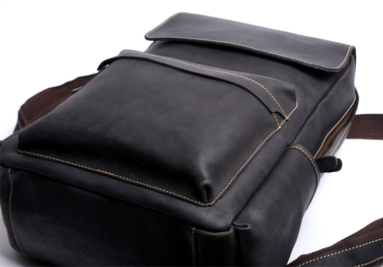 Design: Genuine Leather Mens Cool Backpack Sling Bag Large Black Travel Bag Hiking Bag for men