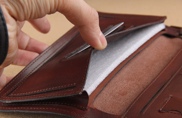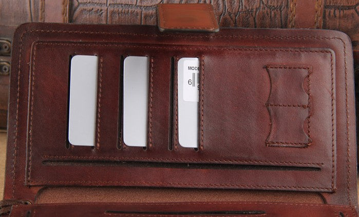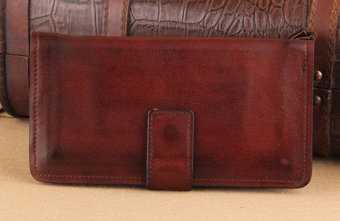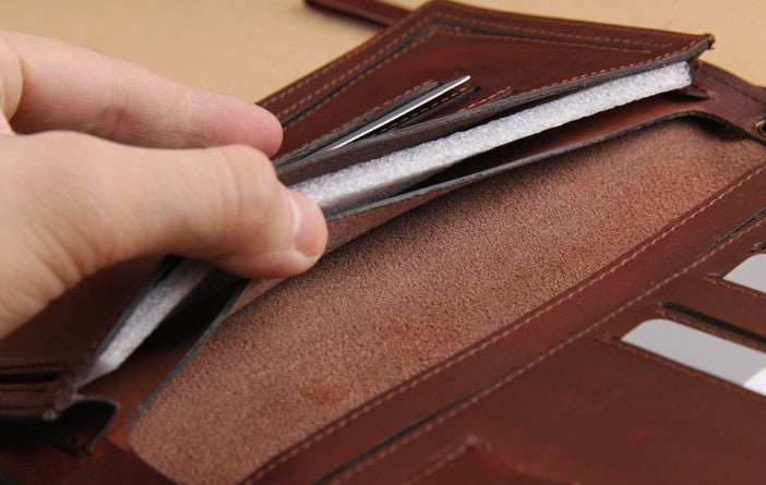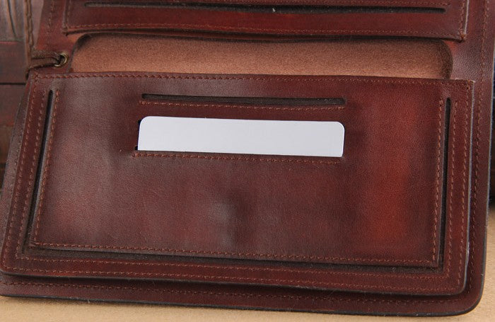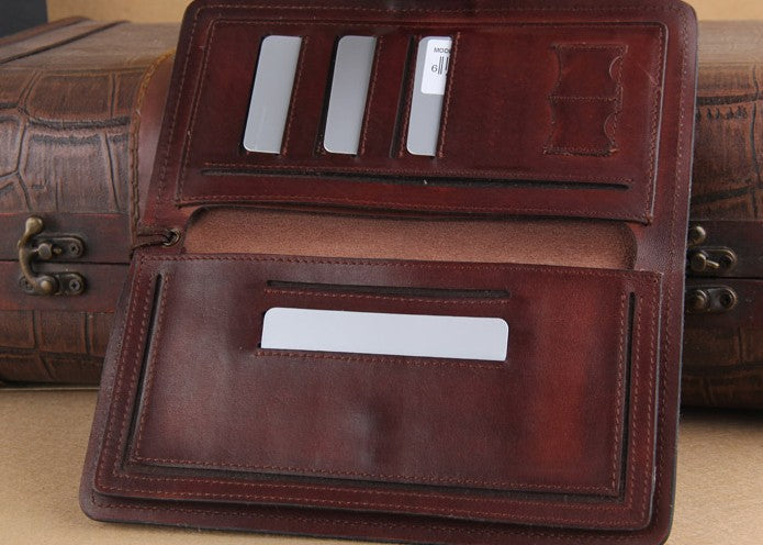 Design: Genuine Leather Mens Cool Biker Chain Wallet Long Leather Wallet Slim Clutch Wristlet Wallet for Men