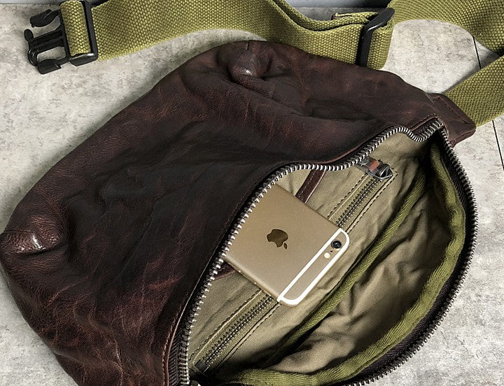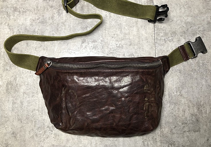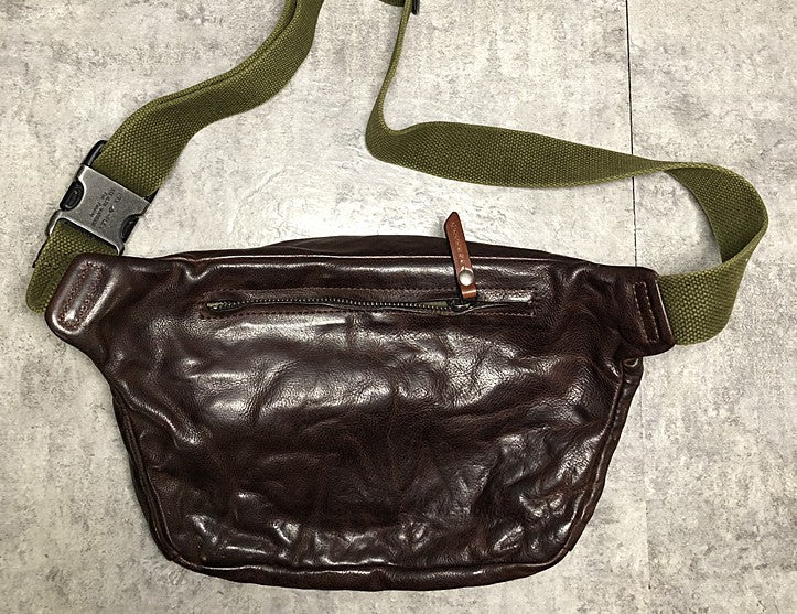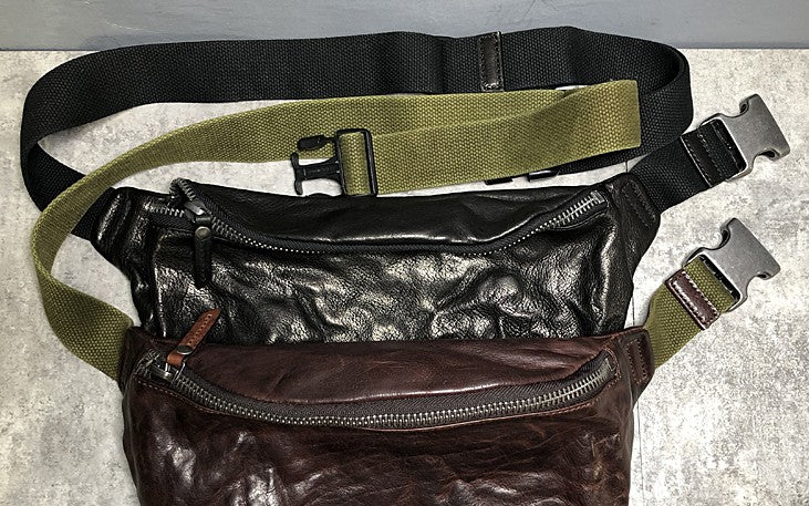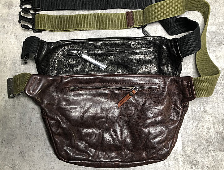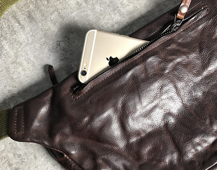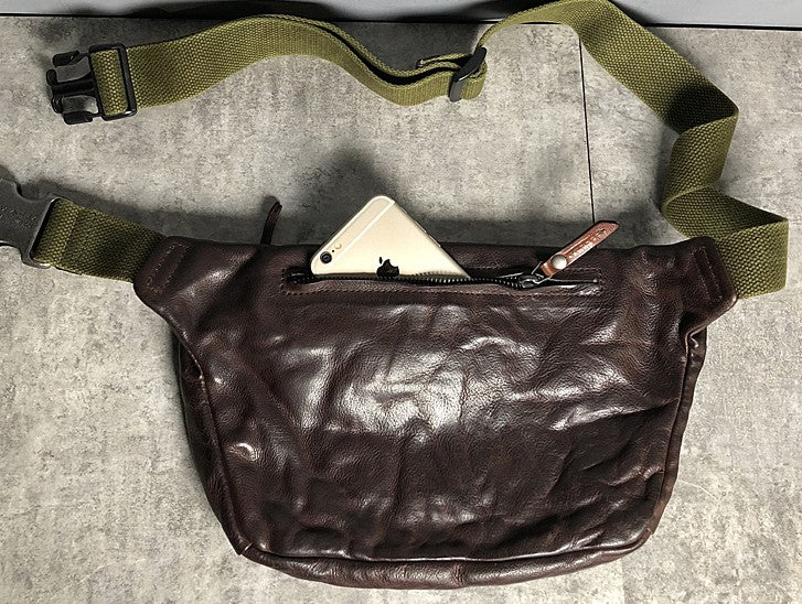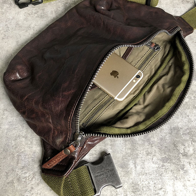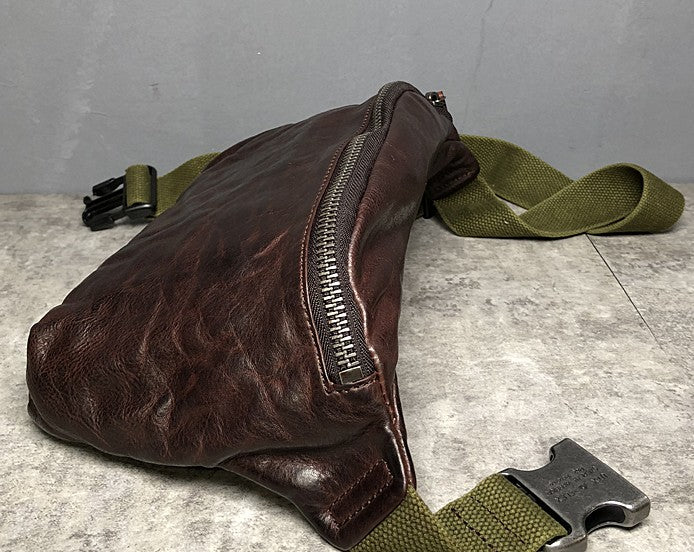 Design: Genuine Leather Mens Small Chest Bag Sling Bag Waist Bag Hip Pack Belt Bag Fanny Pack Bumbag for Men