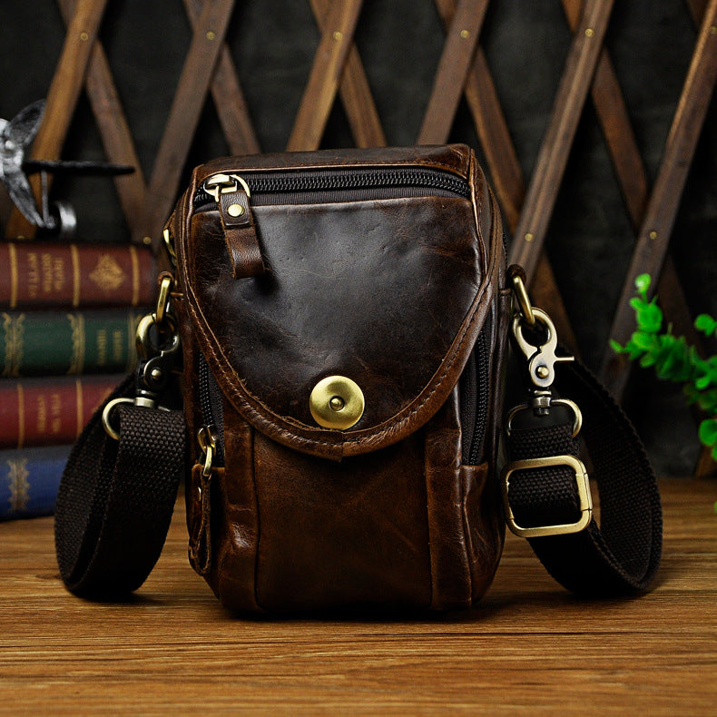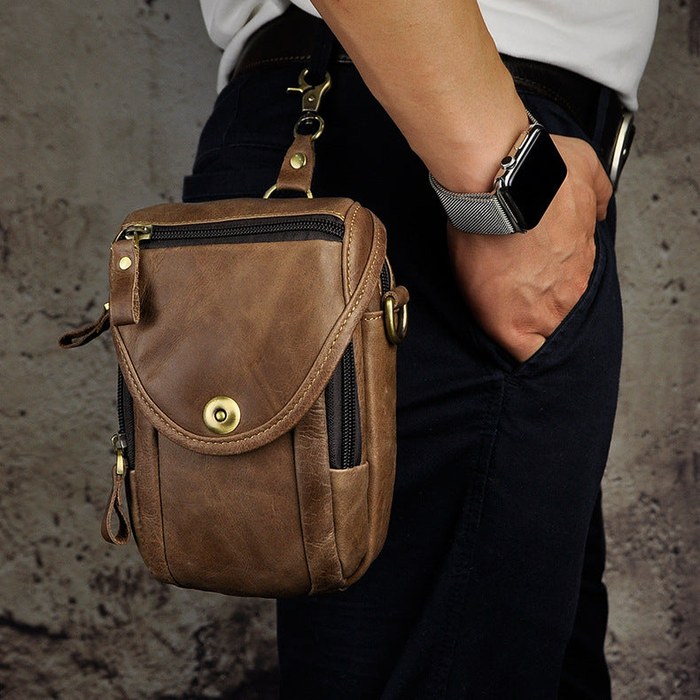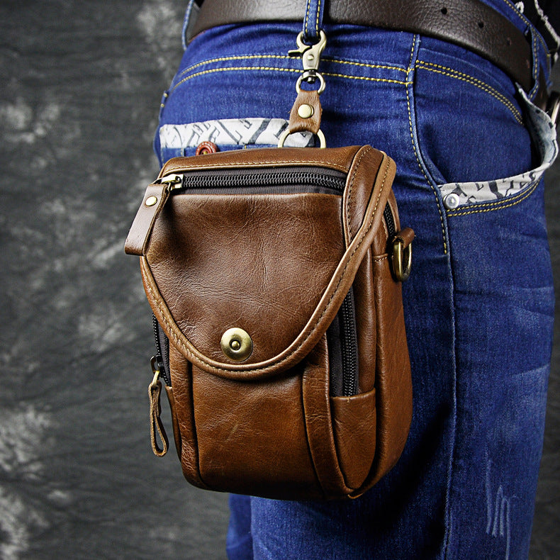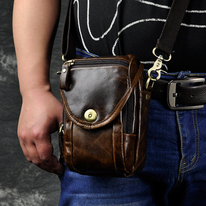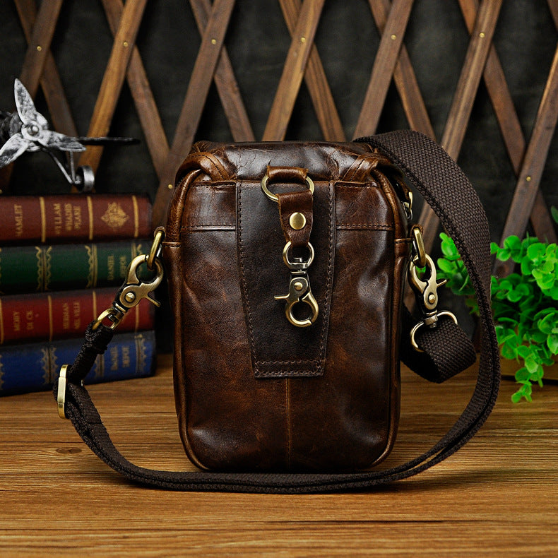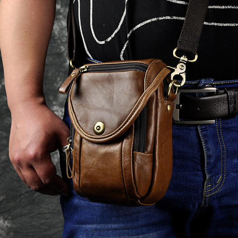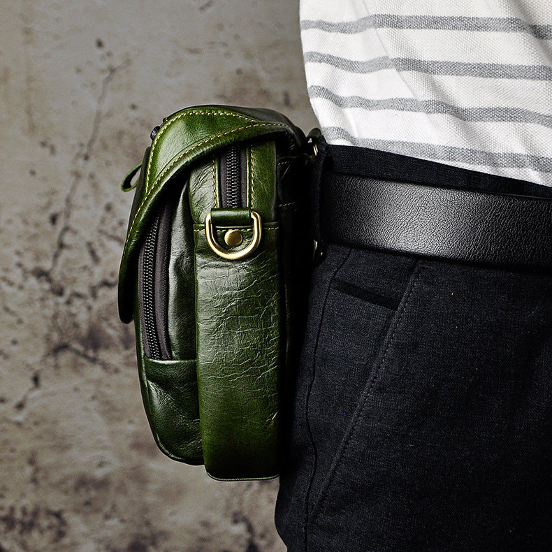 Design: Genuine Leather Mens Waist Bag Hip Pack Belt Bag Fanny Pack Bumbag for Men