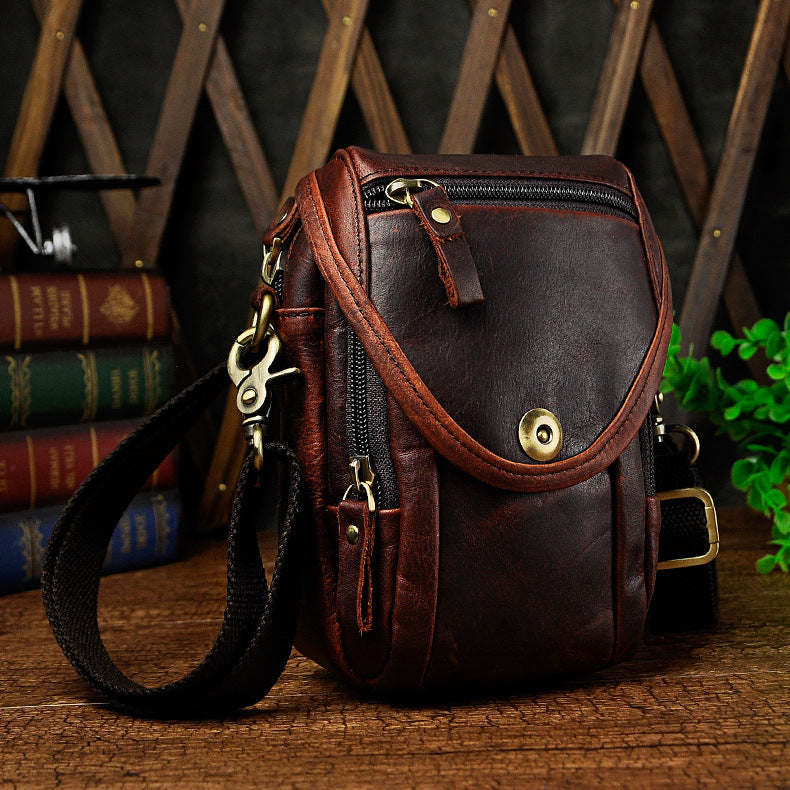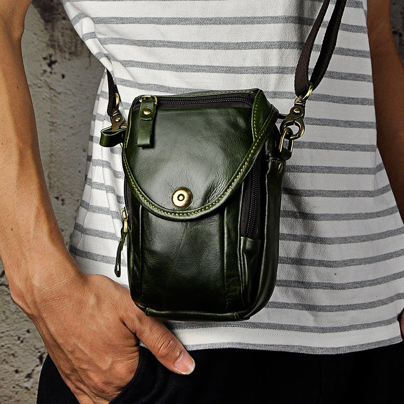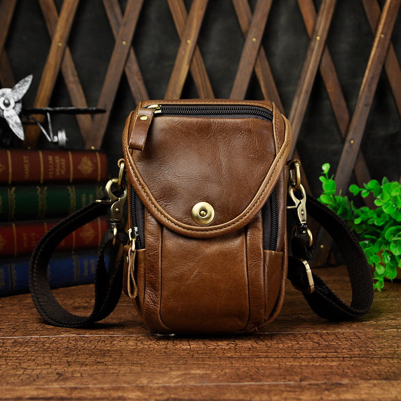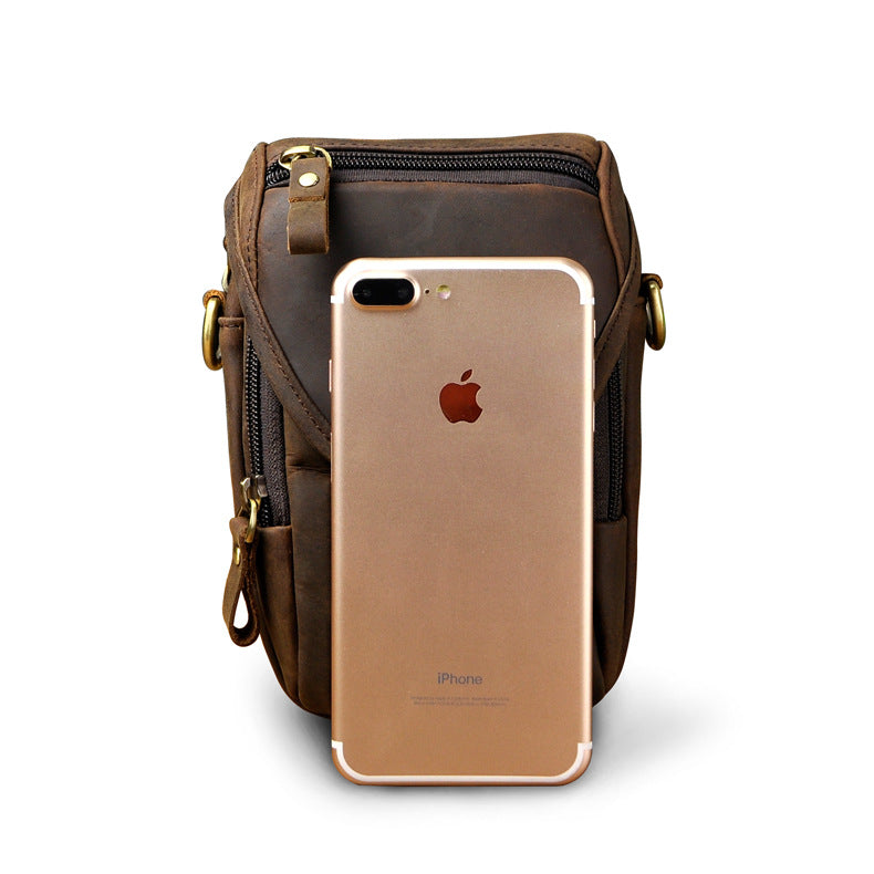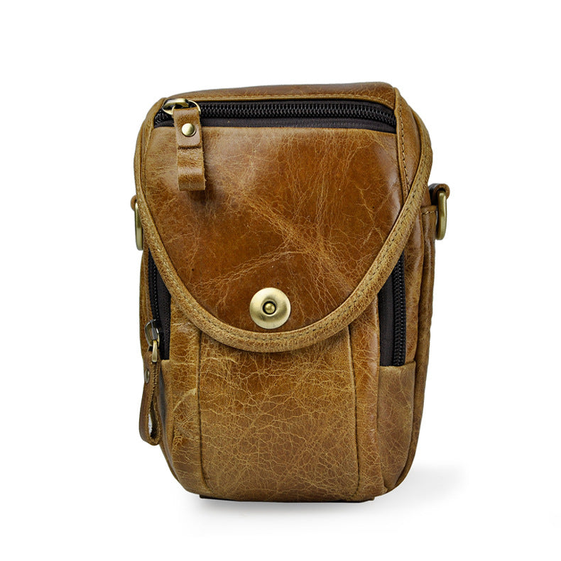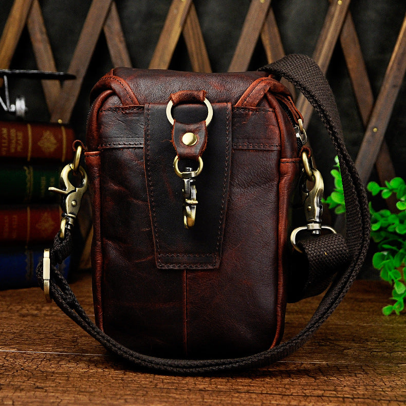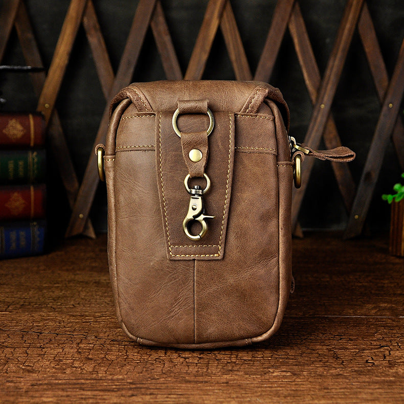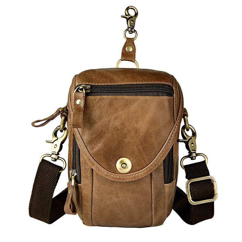 Design: Genuine Leather Mens Waist Bag Hip Pack Belt Bag Fanny Pack Bumbag for Men