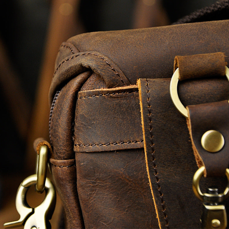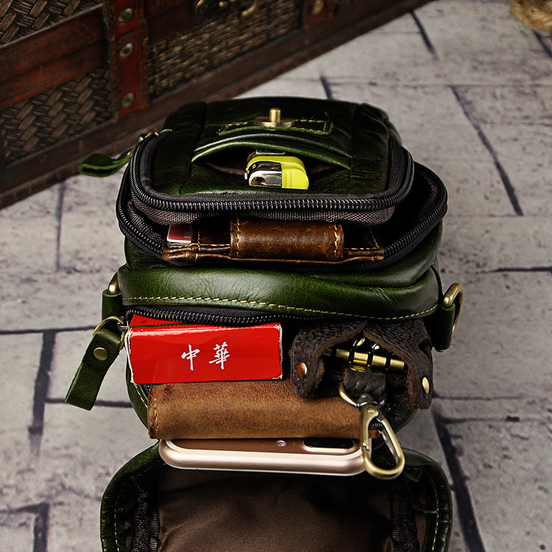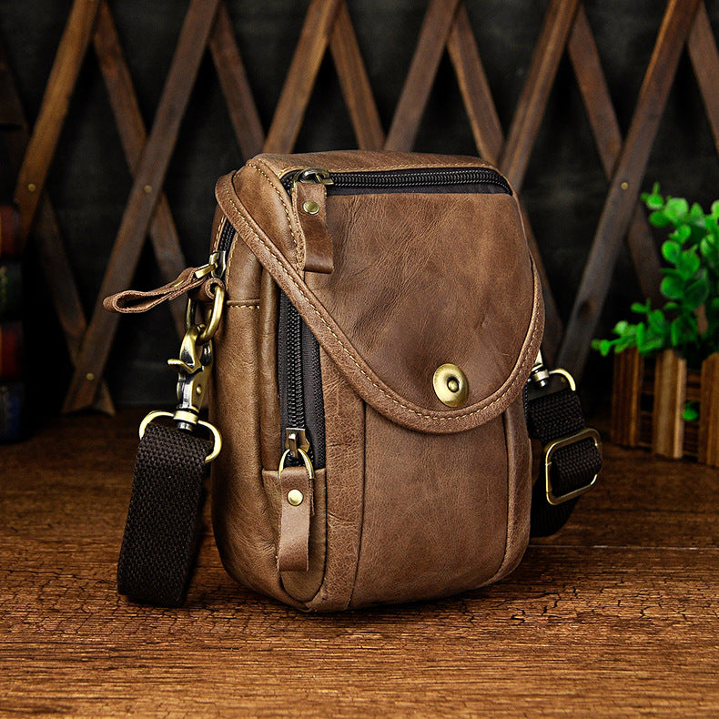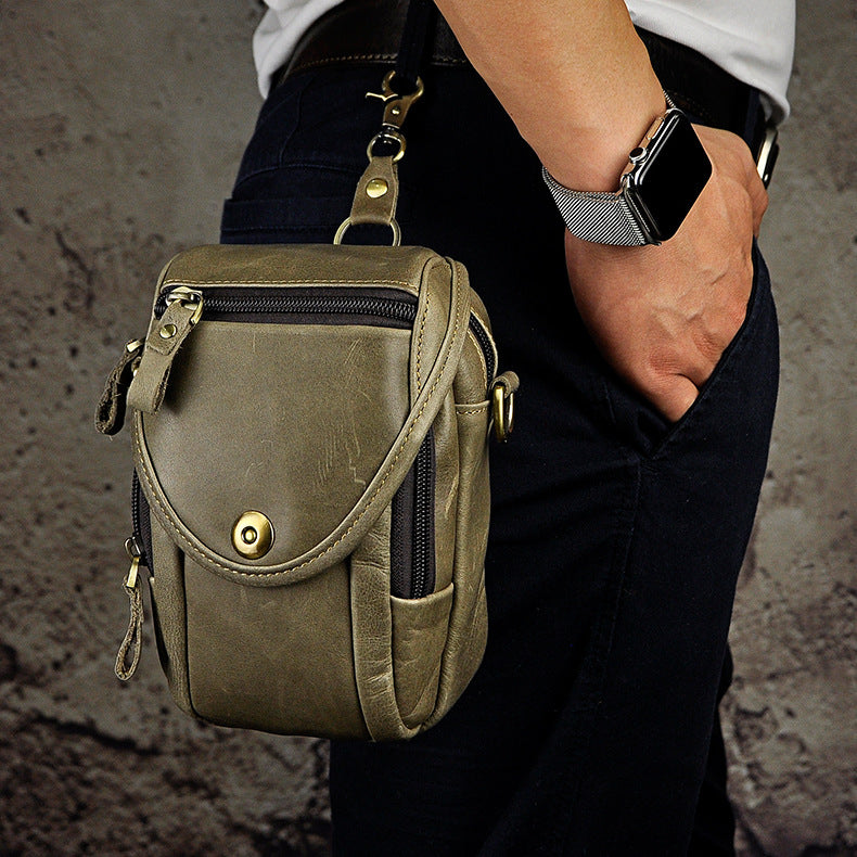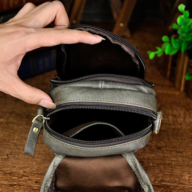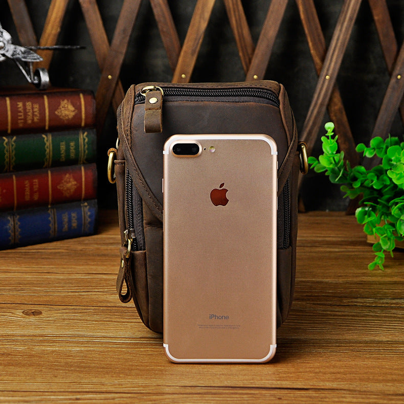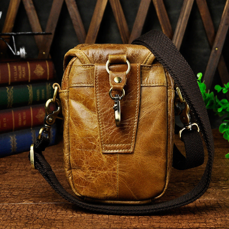 Design: Genuine Leather Mens Waist Bag Hip Pack Belt Bag Fanny Pack Bumbag for Men