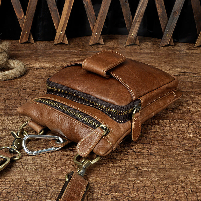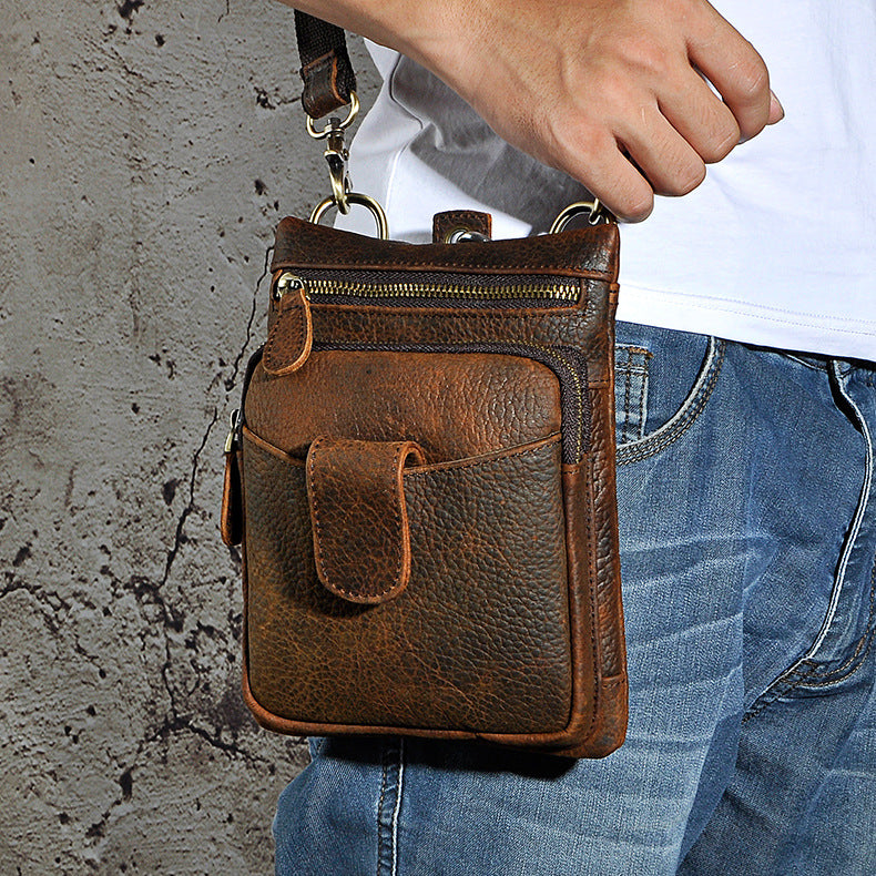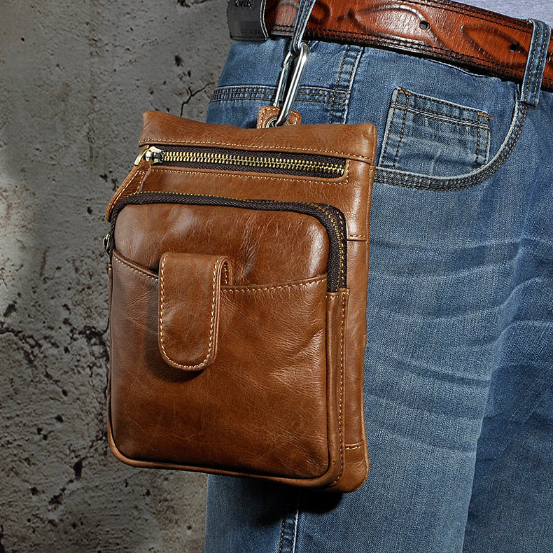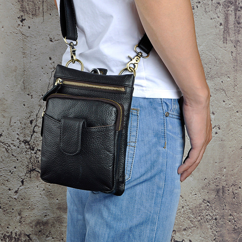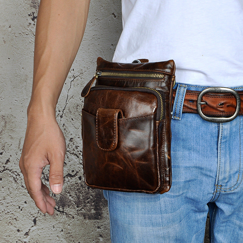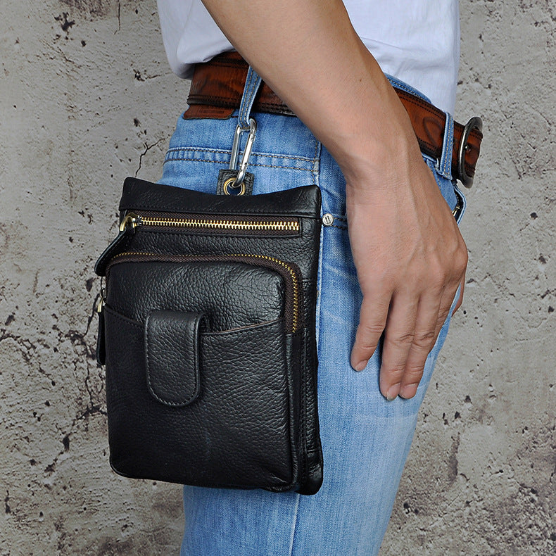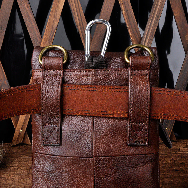 Design: Genuine Leather Mens Waist Bag Hip Pack Belt Bag Fanny Pack Bumbag for Men