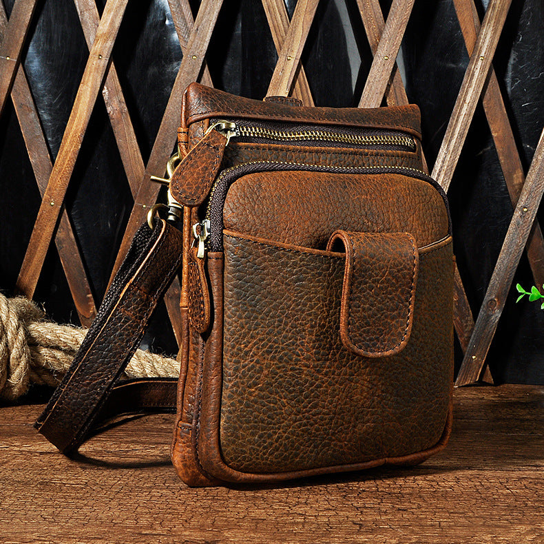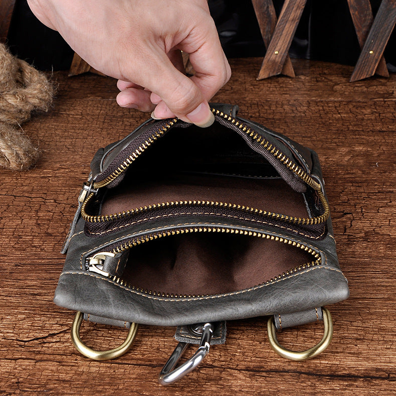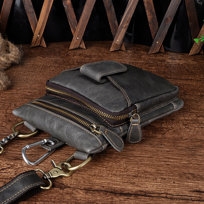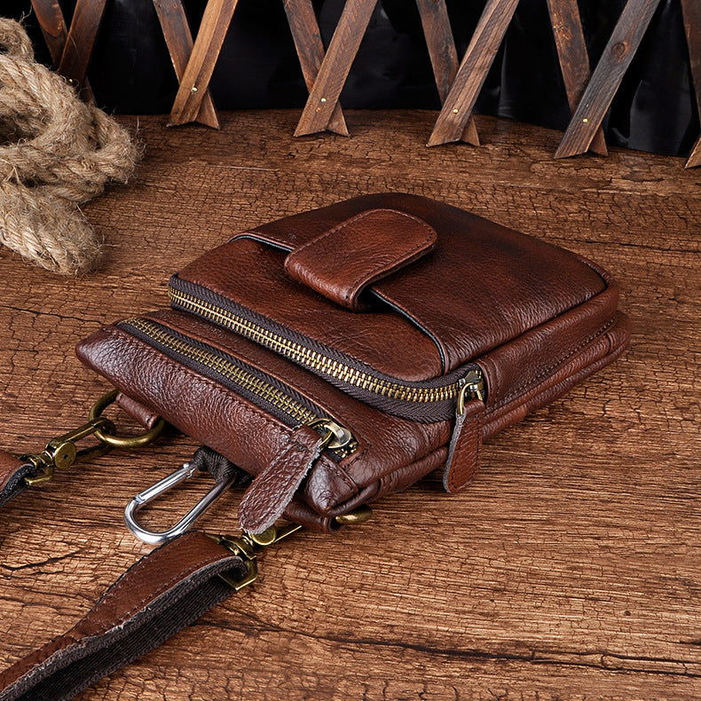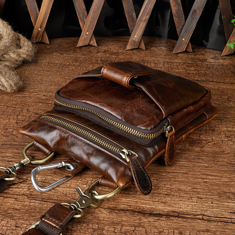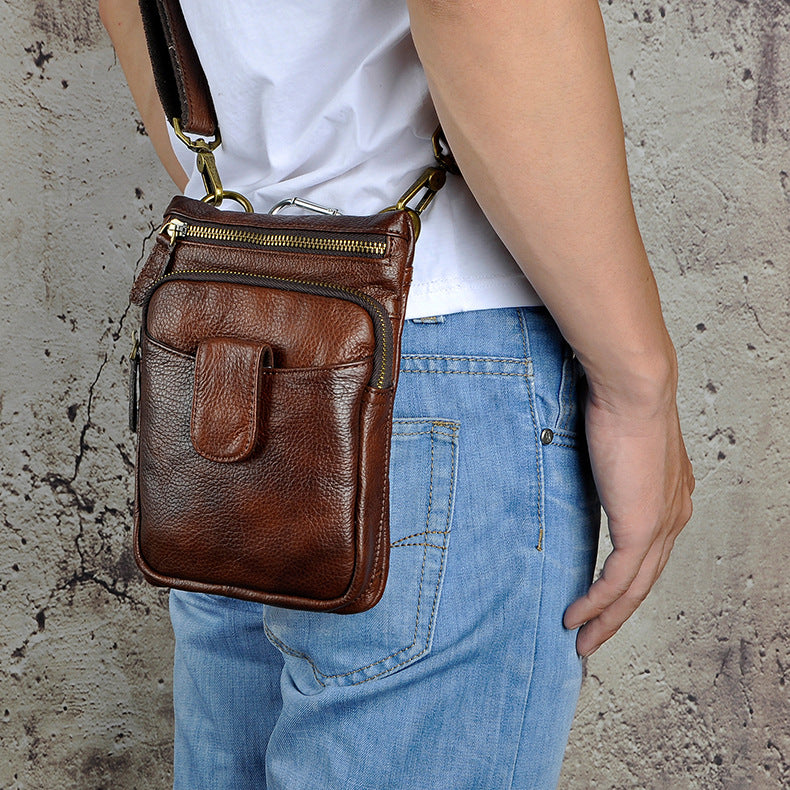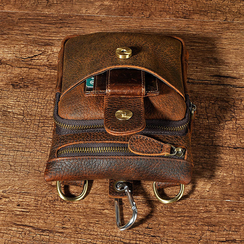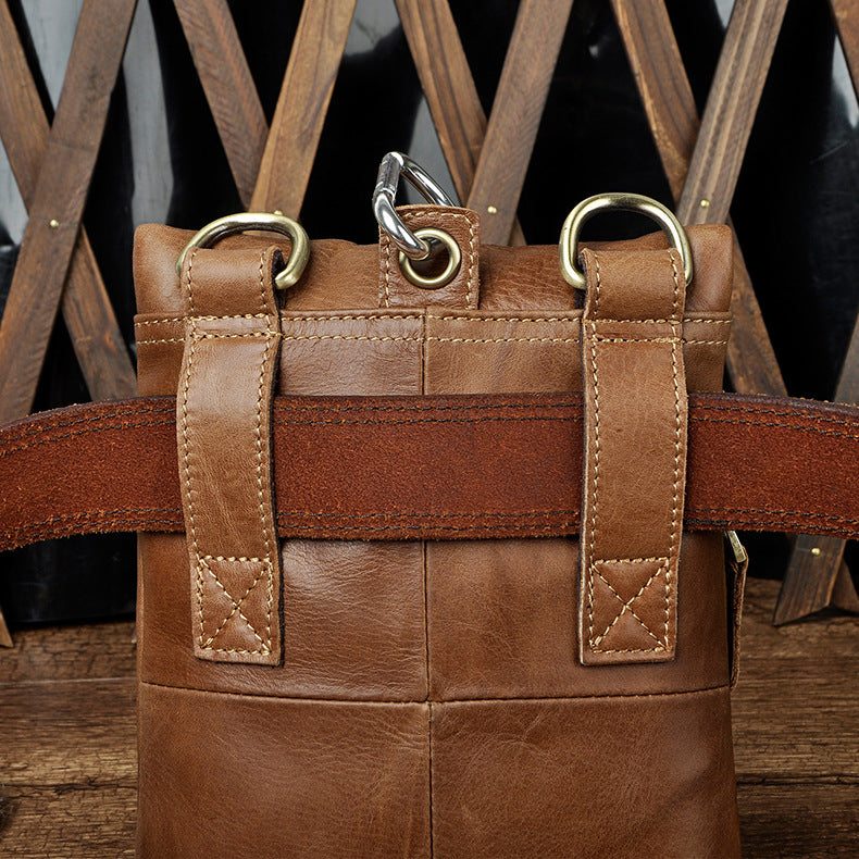 Design: Genuine Leather Mens Waist Bag Hip Pack Belt Bag Fanny Pack Bumbag for Men