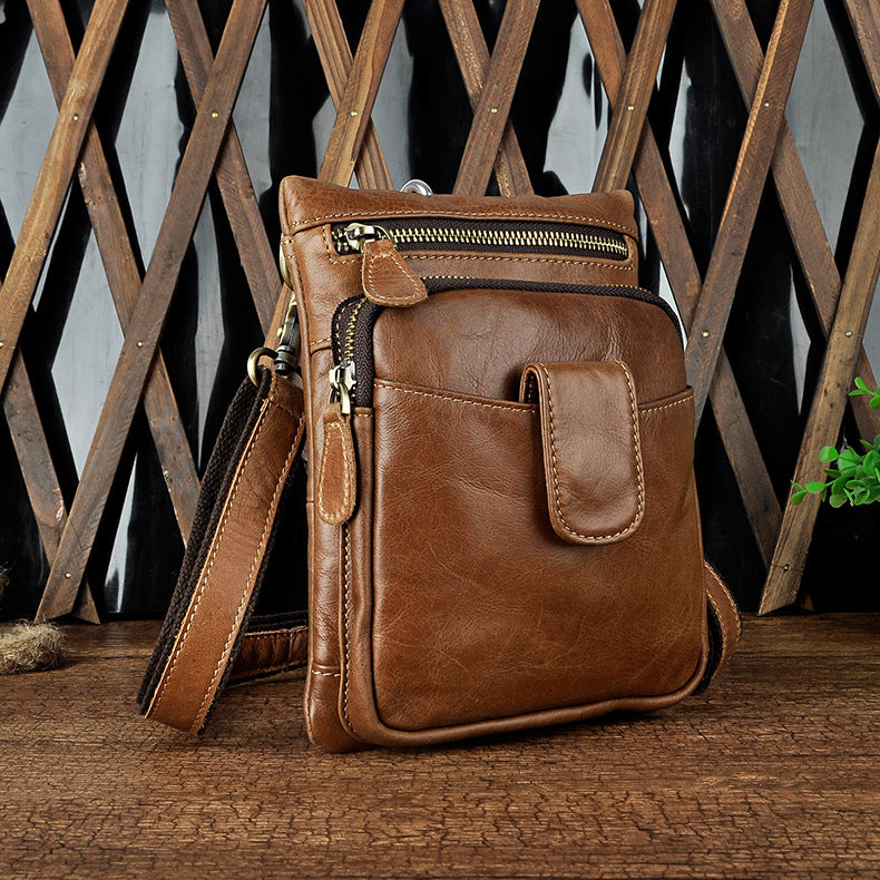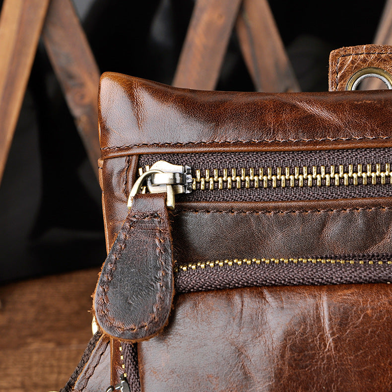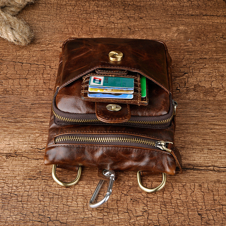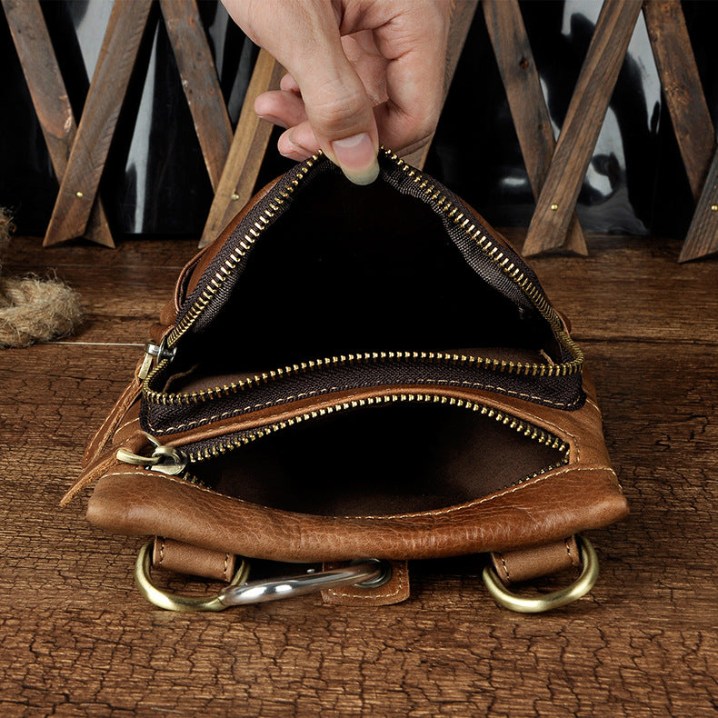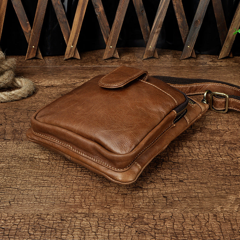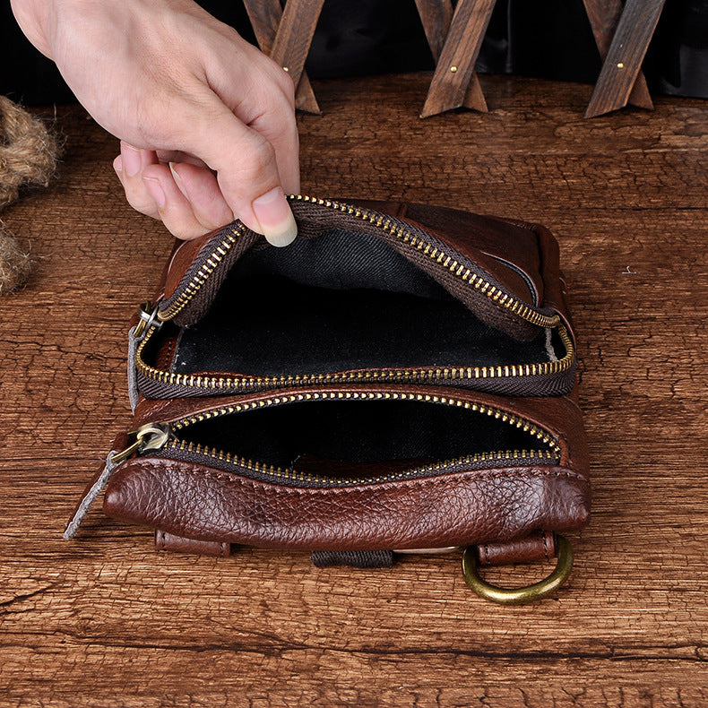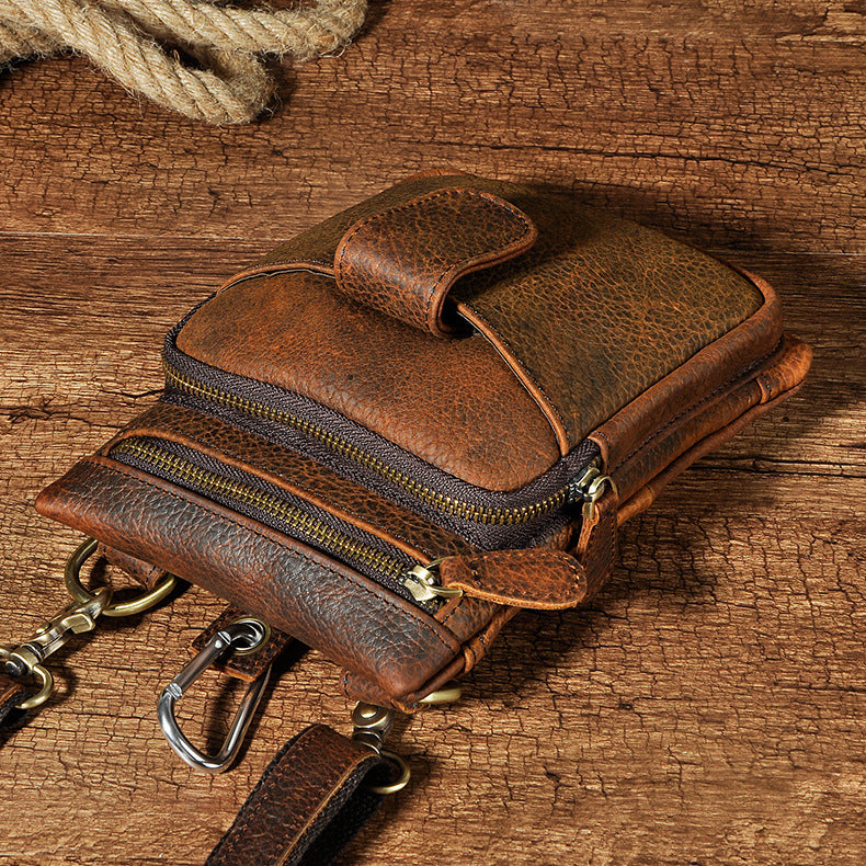Design: Genuine Leather Mens Waist Bag Hip Pack Belt Bag Fanny Pack Bumbag for Men