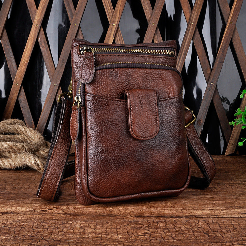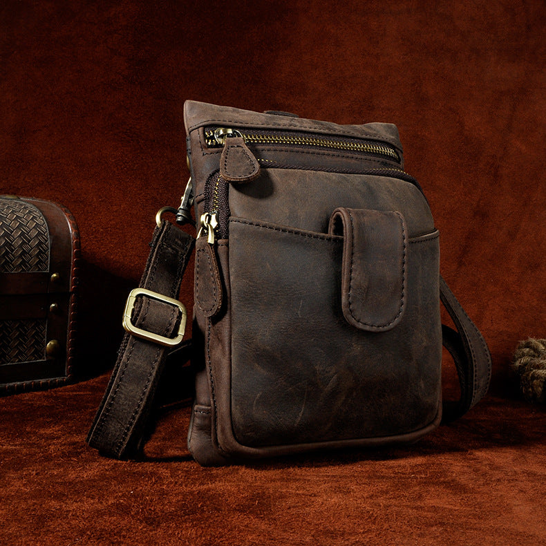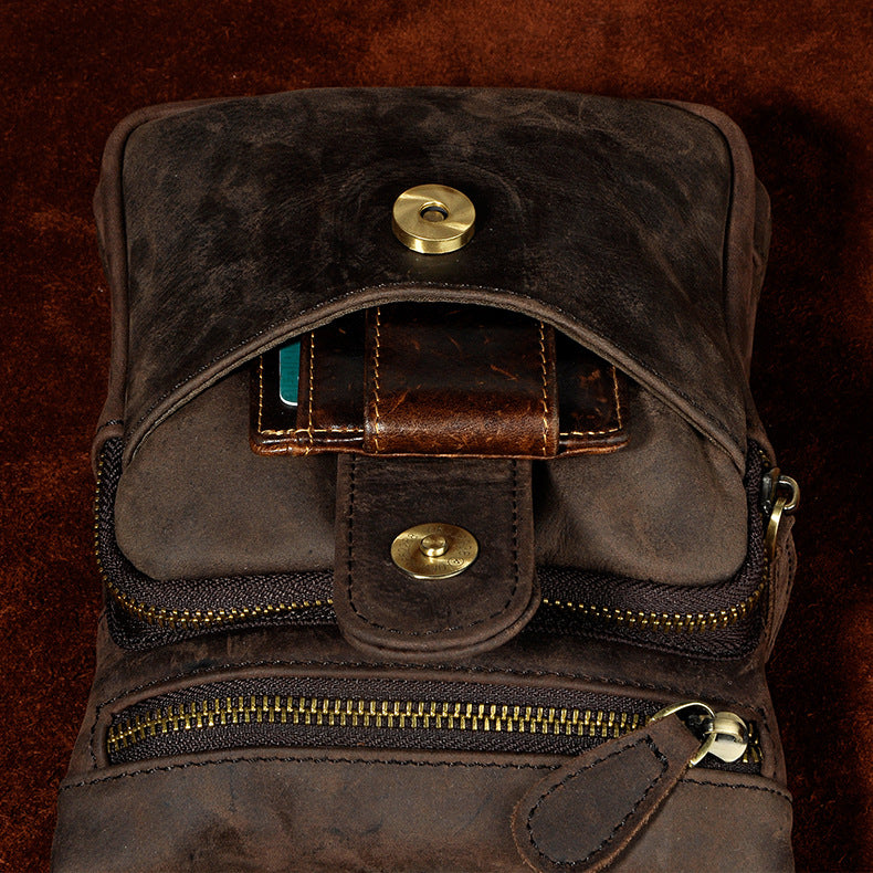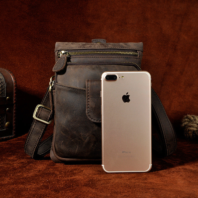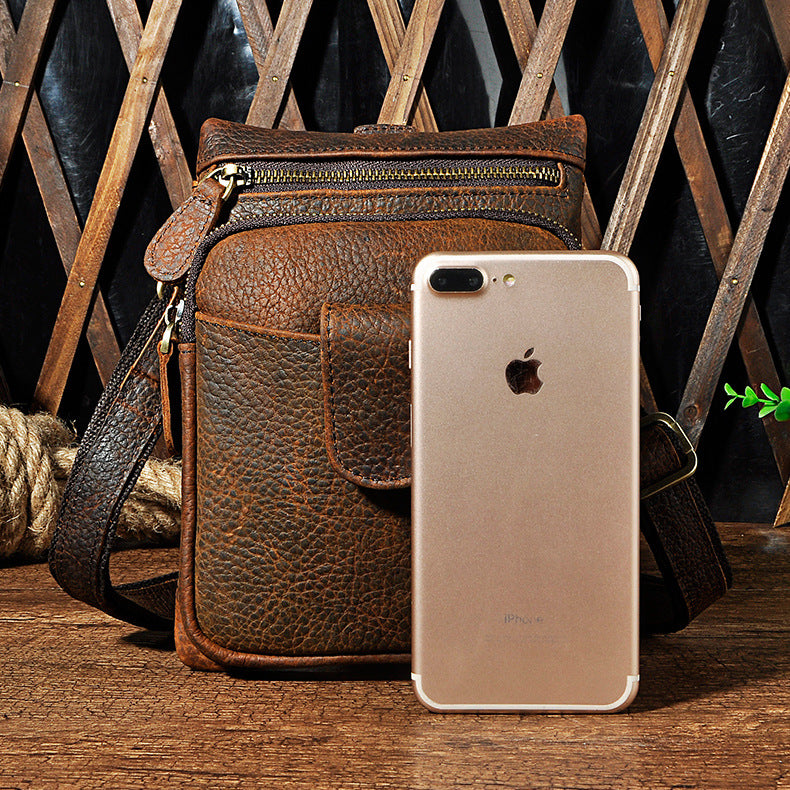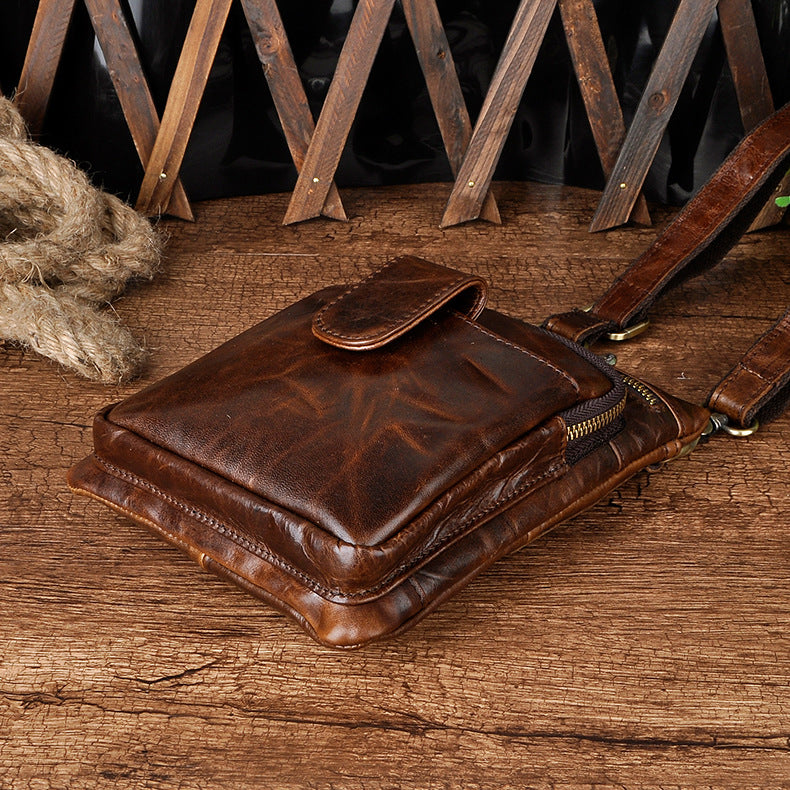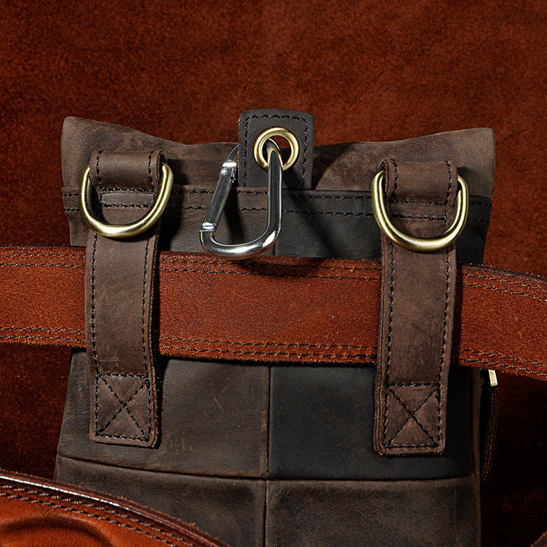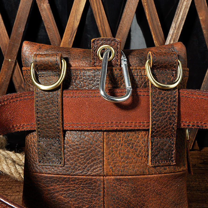 Design: Genuine Leather Mens Waist Bag Hip Pack Belt Bag Fanny Pack Bumbag for Men