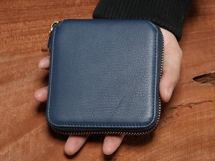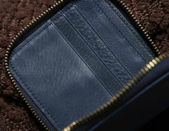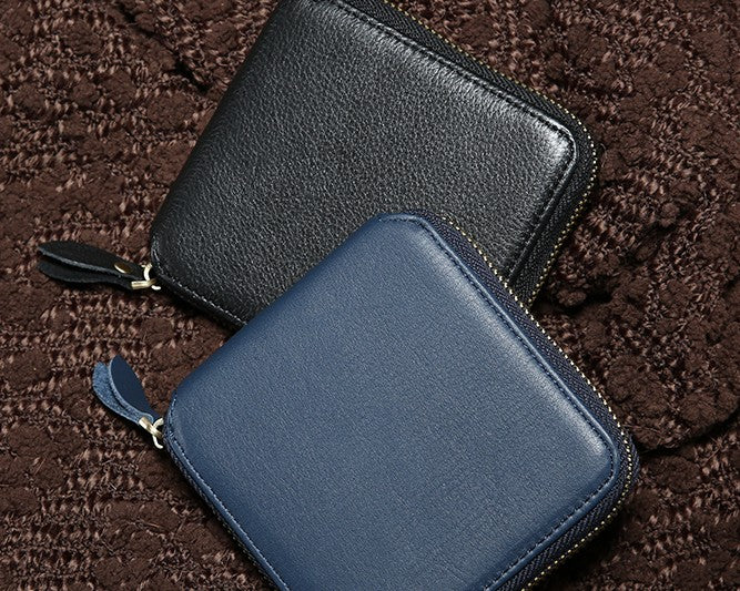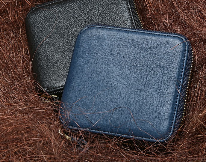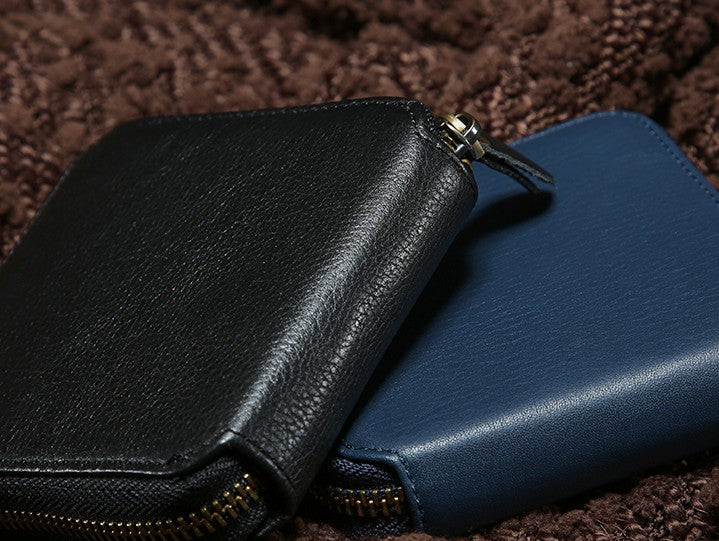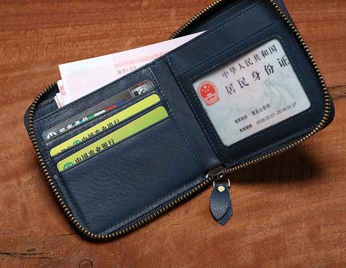 Design: Genuine Leather Mens Zipper Cool billfold Leather Wallet Men Small Wallets Bifold for Men