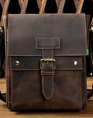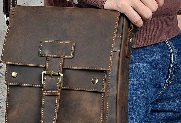 Design: Cool Leather Small Messenger Bags Vintage CrossBody Bag Shoulder Bag For Men