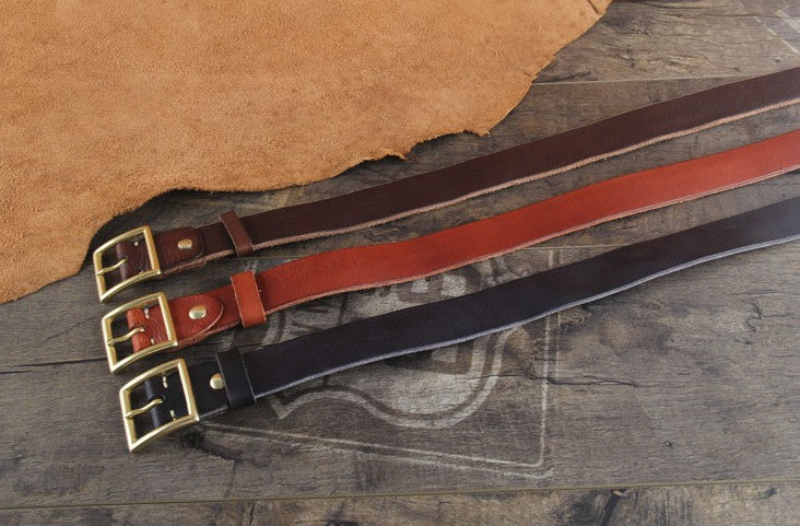 IMPORTANT NOTE: Order your custom leather belt 2" LARGER than your pant size (i.e., 36" pant size = 38" belt). Or, better yet, measure around your waist or hips, wherever you will wear the belt, and ADD 2" to that measurement. If you will be wearing a designer/western style buckle with this belt do NOT add the 2", as the designer/western style buckle adds 2" to the length of the belt.