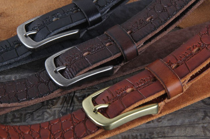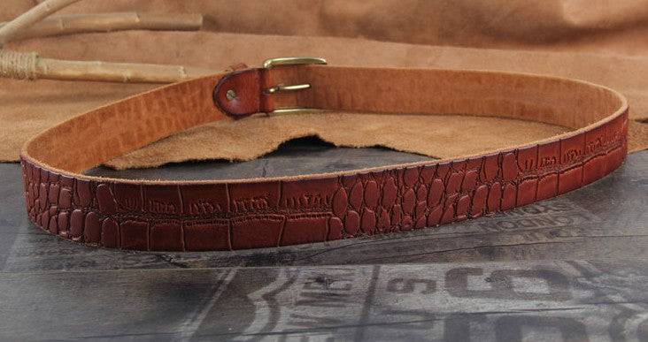 IMPORTANT NOTE: Order your custom leather belt 2" LARGER than your pant size (i.e., 36" pant size = 38" belt). Or, better yet, measure around your waist or hips, wherever you will wear the belt, and ADD 2" to that measurement. If you will be wearing a designer/western style buckle with this belt do NOT add the 2", as the designer/western style buckle adds 2" to the length of the belt.