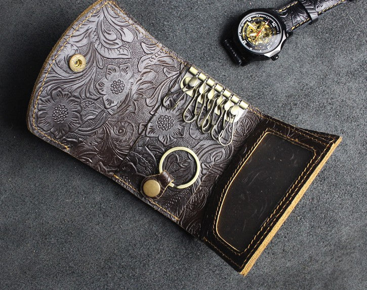 Design: Leather Wallet for Keys Mens Key Wallet Car Key Wallet Trifold Key Wallet Holder Key Case Wallet