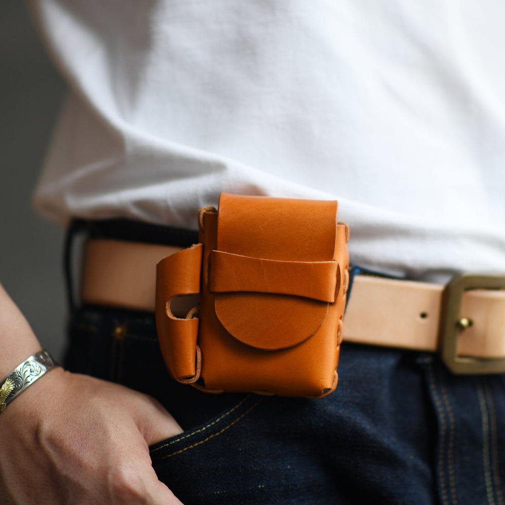 Handmade Beige Leather Mens Cigarette Case with Lighter Holder Belt Loop for Men