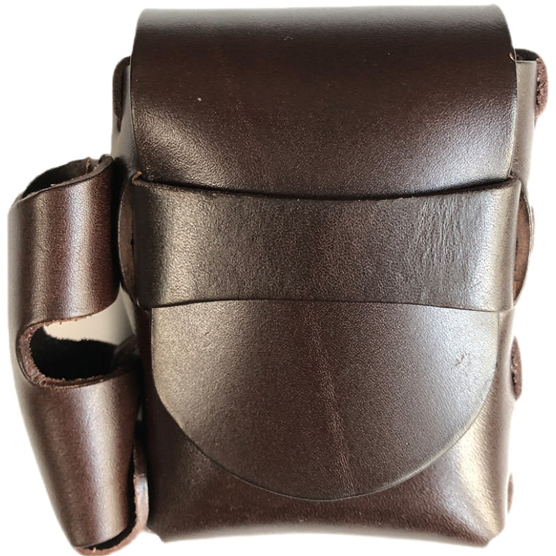 Style: Handmade Black Leather Mens Cigarette Case with Lighter Holder Belt Loop for Men