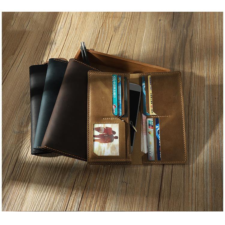 Design: Handmade Coffee Leather Mens Bifold Long Wallets Personalized Coffee Checkbook Wallets for Men