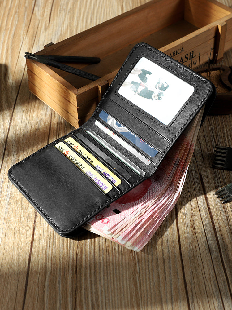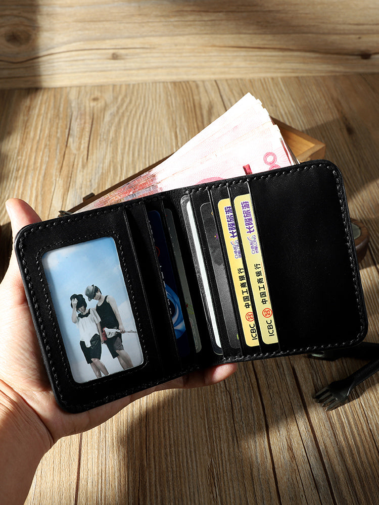 Style: Handmade Black Leather Mens Billfold Wallets Personalize Black Bifold Small Wallets for Men