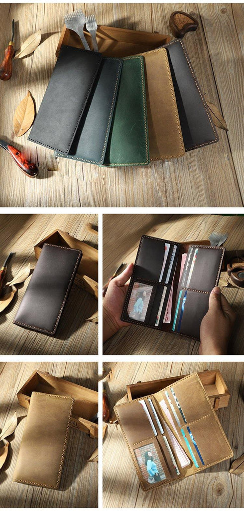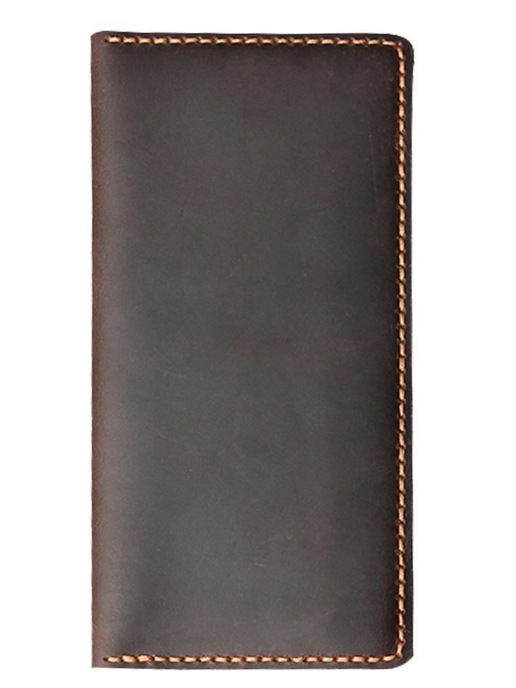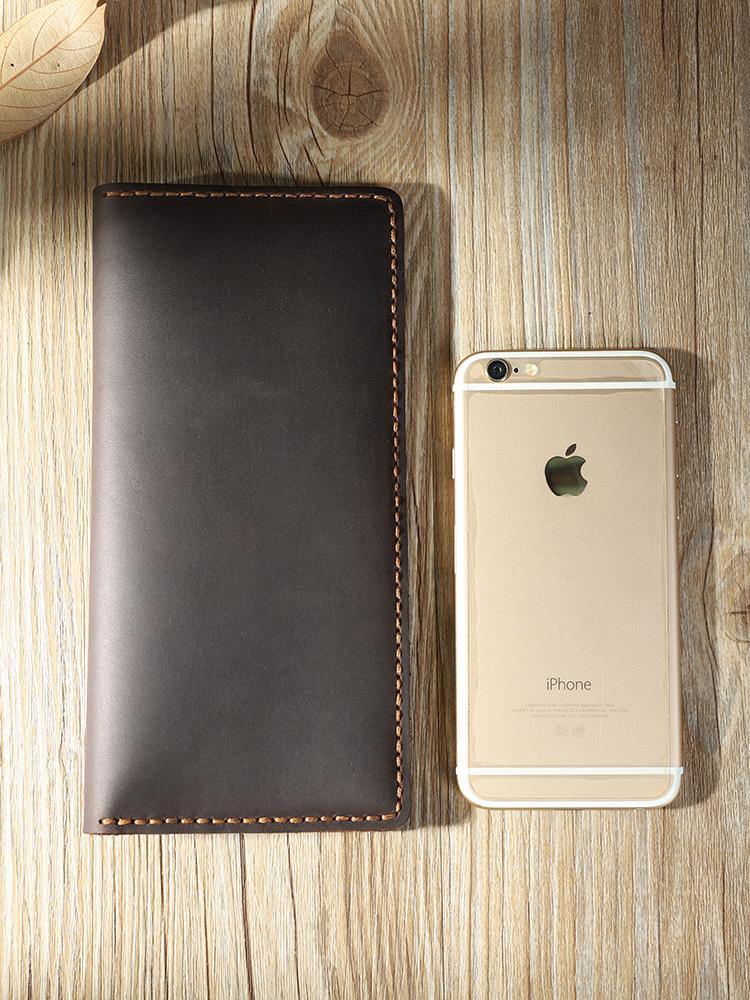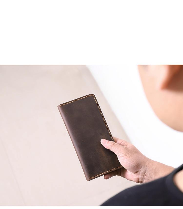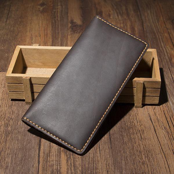 Style: Handmade Black Leather Mens Bifold Long Wallet Personalized Black Checkbook Wallets for Men
