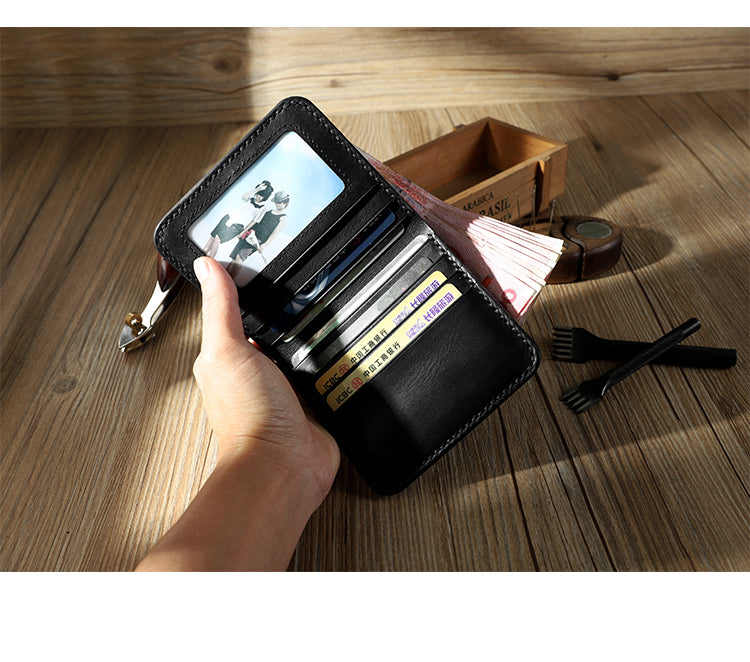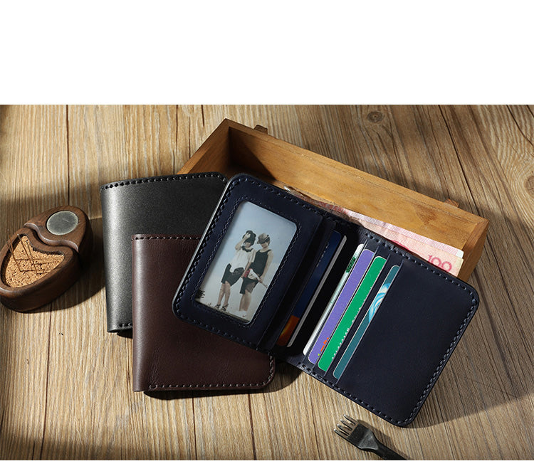Style: Handmade Black Leather Mens Billfold Wallets Personalize Black Bifold Small Wallets for Men
