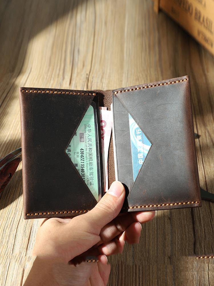 Style: Handmade Blue Leather Mens Small Card Holders Wallet Personalized Bifold Card Wallets for Men