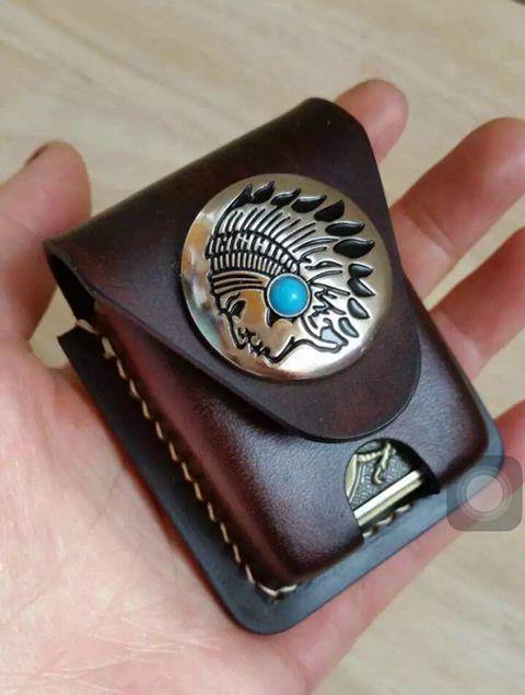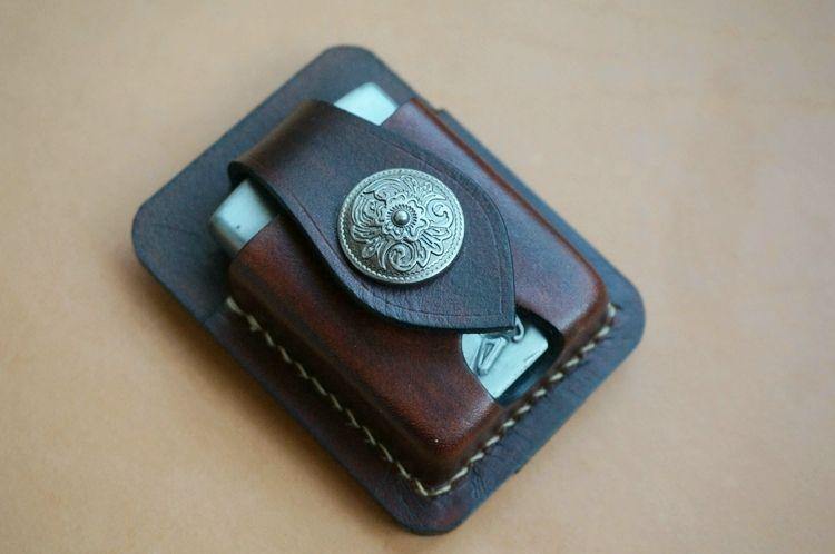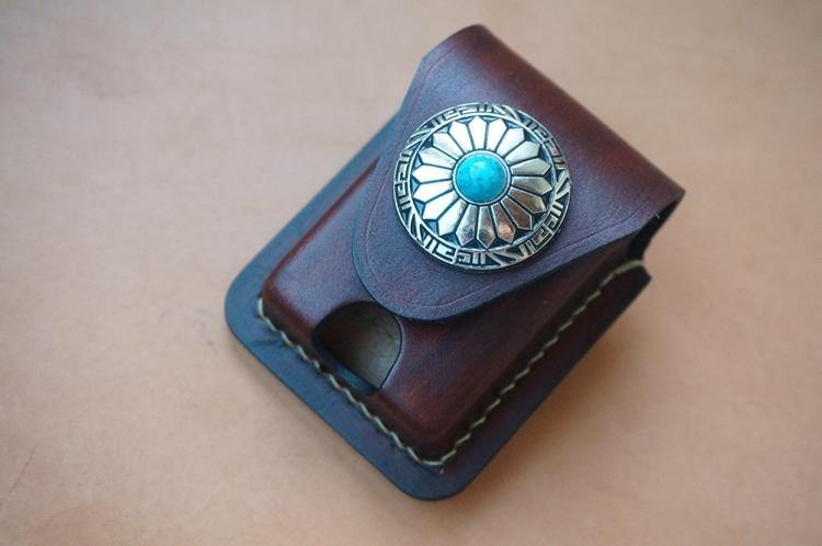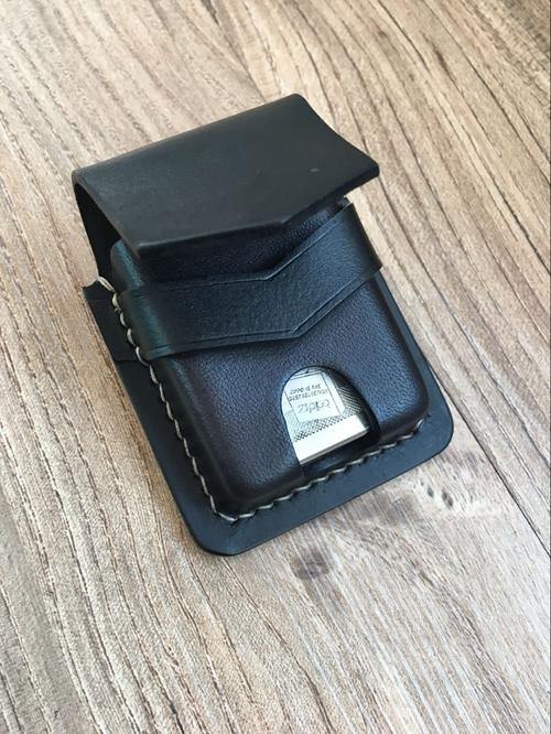 Design: Handmade Brown Thick Leather Lighter Cover Black Protective Lighter Cover For Men
