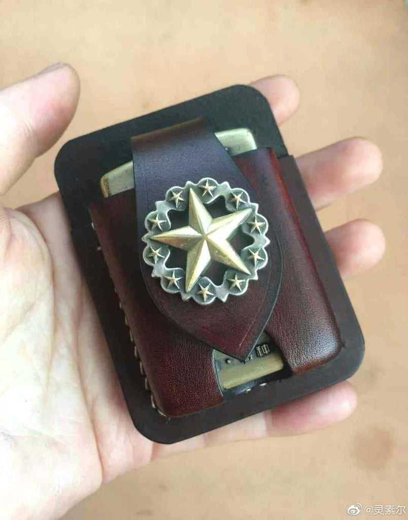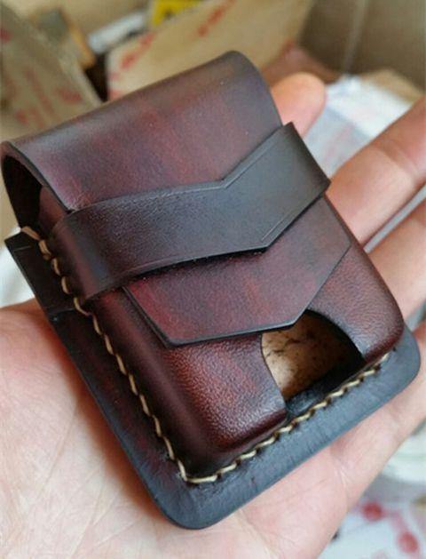 Style: Handmade Brown Thick Leather Lighter Cover Black Protective Lighter Cover For Men