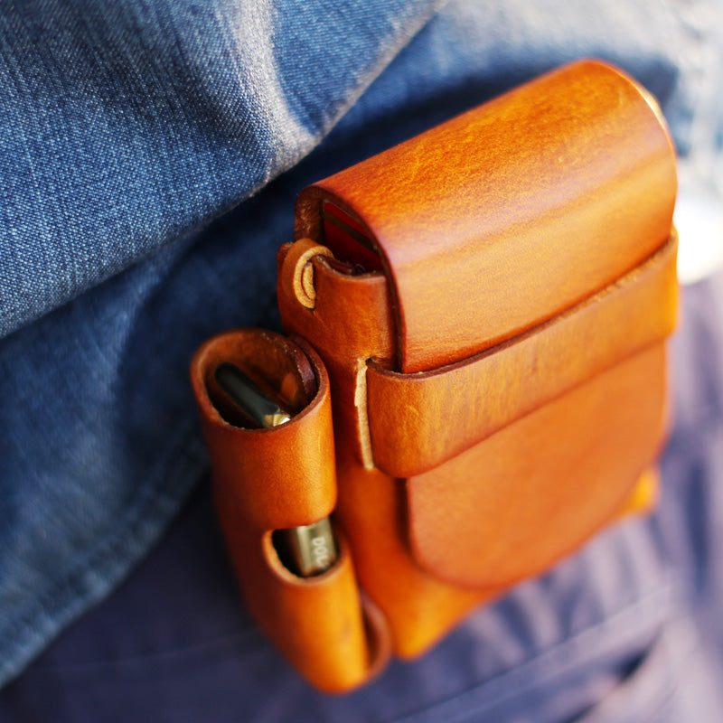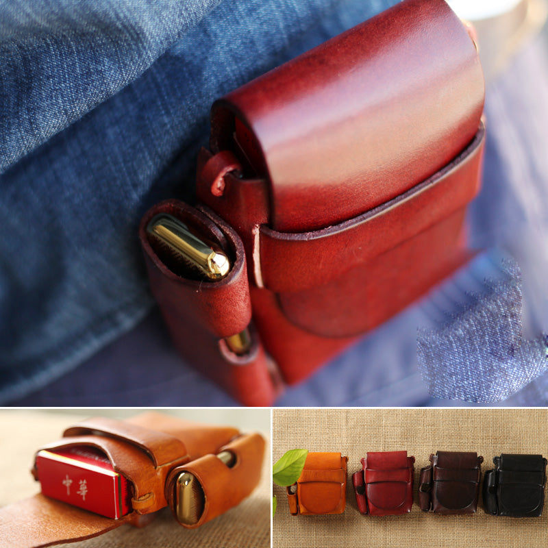 Handmade Brown Leather Mens Cigarette Case Cigarette Holder Belt Pouch with Belt Loop for Men