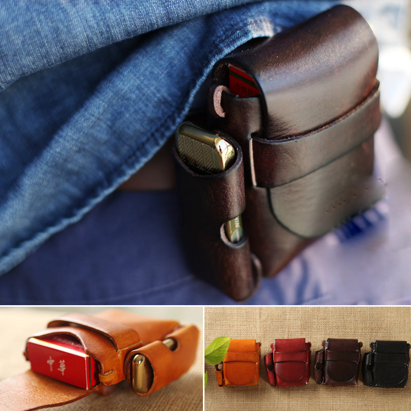 Design: Cool Brown Leather Mens Cigarette Case Cigarette Holder Belt Pouch with Belt Loop for Men